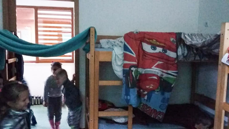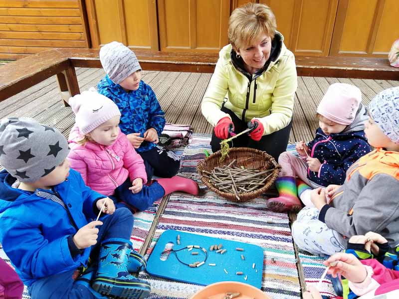 Mivel is teltek a napok? Madár-lesre indulhattak, madárhangokat gyűjtöttek, madarakat barkácsoltak és röptettek a gyerekek, na és persze papírsárkányt is. Közelebbről is megismerkedhettek a fák, bokrok tapintásával, illatával, formájával, levelével, virágjával. Készült kéreglenyomat, ágakból, levelekből sátor, botozhattak, bodzaágból nyakláncot fűzhettek, a virágzatok felhasználásával bodza-üdítő és hársfa tea is készült. Nem maradt el a fára mászás, fogócska, bújócska, erdőn való „átvágás”, titkos átjárók keresése sem. S mit lehet csinálni, ha esik az eső? Ó, hát tömérdek dolgot! Például remek játszóhellyé válhat az egyébként pihenésre szolgáló faház. Nagyszerű bunkereket, búvóhelyeket lehet építeni plédekból, takarókból, ami spontán kialakuló szerepjátékok helyszíne lehet. S ki hinné, hogy bújócskázni is lehet a szobákban? Vajon ki talál meg az ágy alatt? A hosszú előtér tornaszobává változhat, ahol eszközök nélkül is mindenféle csúszásokat, mászásokat, tornagyakorlatokat lehet végrehajtani. Na és végre nem szól anyu, hogy „kisfiam ne hozd be a lakásba a botot!” Milyen jó kis „tábortüzet” lehet belőle rakni! S ha eláll az eső? Készülhetnek a sárgolyók, az indián harci díszek az arcra, s remekül lehet kerékpárral áthajtani a tócsákon! S mivel mindenki készült, a gumicsizma meg jól bírja, még a nadrág sem lesz sáros – jó esetben! S, ha igen – az is egy tapasztalat – a váltóruhába átöltözve tovább folytatódhat a játék.