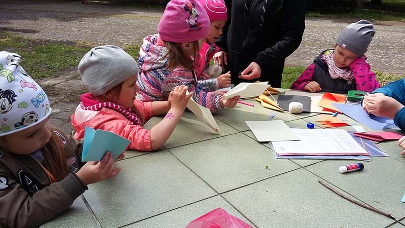 Az idén a tavaszi Erdei óvoda május harmadik hetében szerveződött, s egy zöld jeles nap: a Madarak és fák napja adta a program gerincét. Az óvodapedagógusok a gyerekek életkori sajátosságait is figyelembe véve szervezték meg a mindennapokat. Az óvoda mind az öt csoportja – beleértve a legkisebbeket is – vállalta, hogy kint tölti a hetet az 1-2 esős nap ellenére is. S nem bántuk meg.