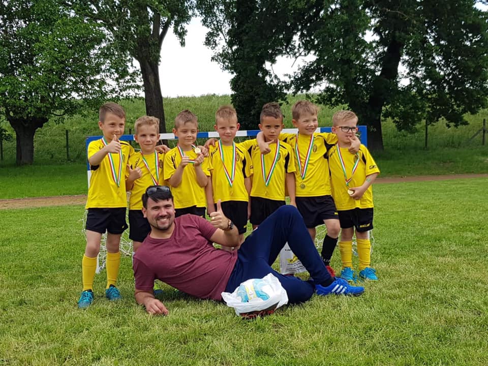A kis focista palánták boldogan, az edzőjük és szüleik büszkén zárták a napot a tornán.