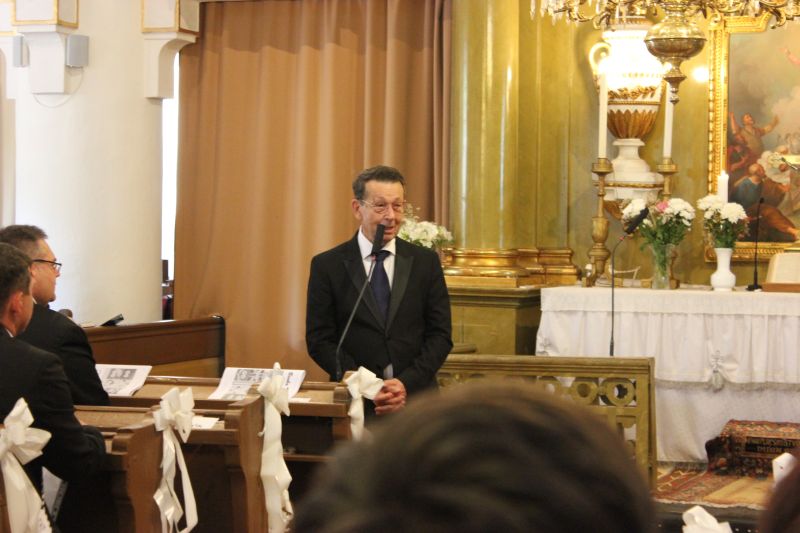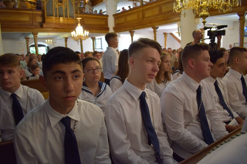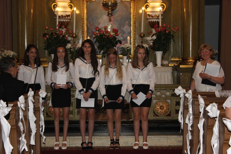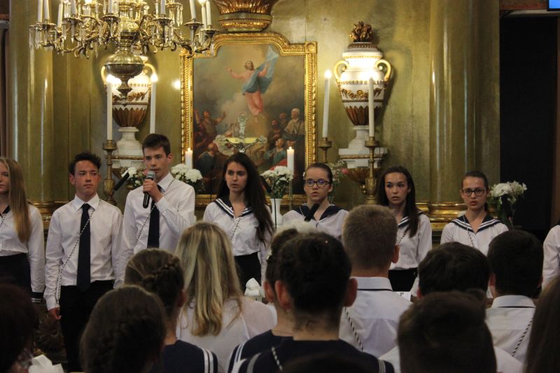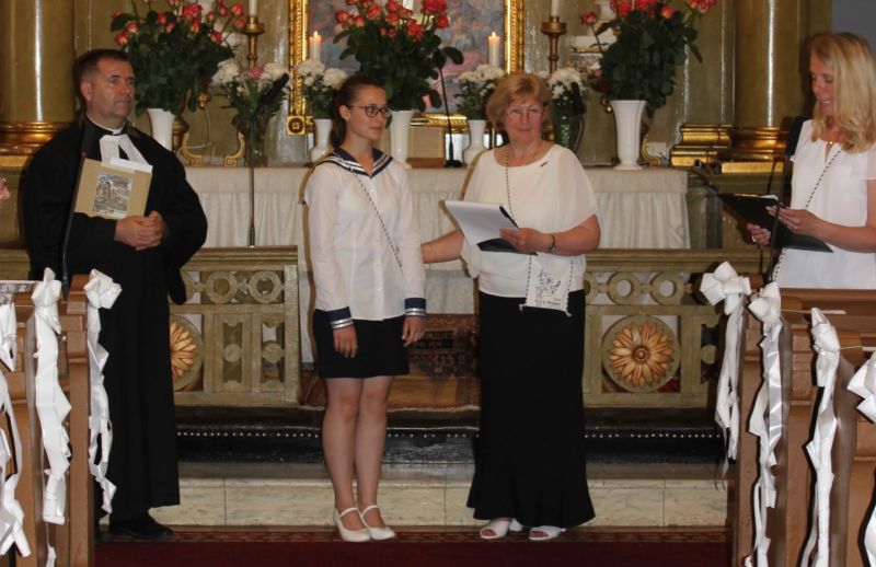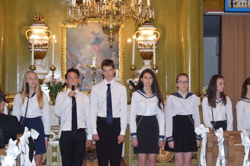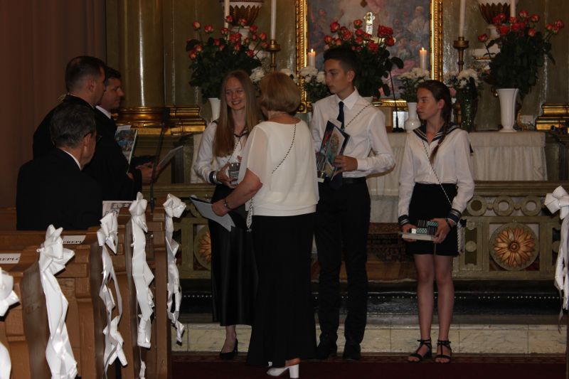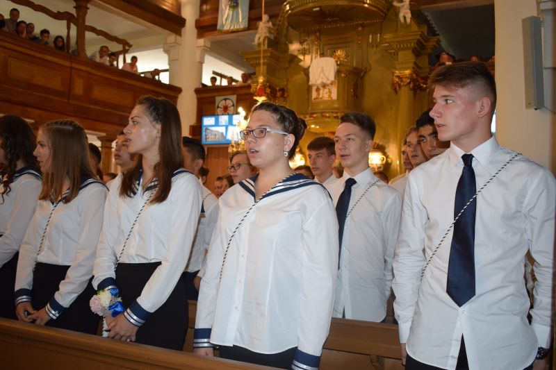 „Éljetek úgy, mint a világosság gyermekei, a világosság gyümölcse ugyanis csupa jóság, igazság és egyenesség.” (Ef 5,8-9) Ezzel az igei gondolattal szólította meg nyolcadikosainkat Molnár Istvánné igazgató asszony, majd így folytatta: „Mindenki útra kész! Felvettétek vállatokra a ballagó tarisznyát, ami jelképe annak, hogy felkészültetek. Bizonyára már van köztetek, aki várja a továbbindulás pillanatát, néhányan inkább megállnátok, és lassítanátok az idő múlásán. Tarisznyátokba sok kincset érő ajándékot rejtettünk el az elmúlt nyolc esztendő alatt. Ha nem hagyjátok a csatját berozsdásodni, akkor mindig használhatjátok a hitbéli, a szellemi, a kulturális, a magyarság, hazaszeretet igaz kincseinek örökségét. Rajtatok múlik, hogy a tarisznyátokat kinyitjátok- e.”