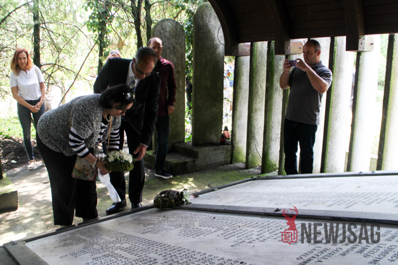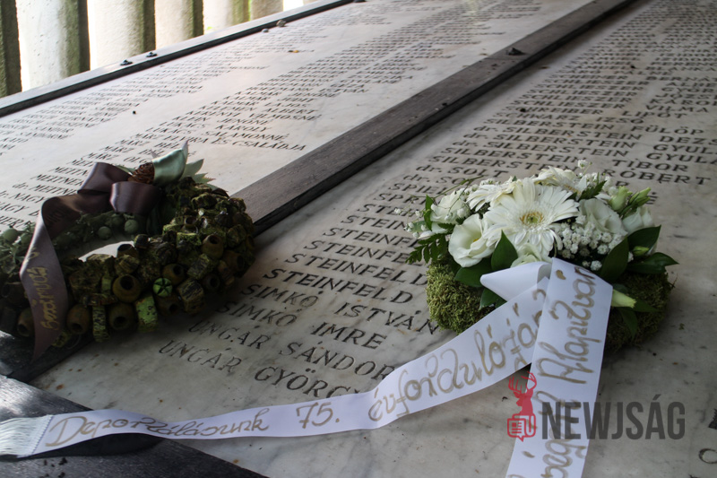 A megjelentek végül a zsidó temetőben álló márványtáblára köveket, virágokat és koszorúkat helyeztek el elhunyt szeretteik emlékére.