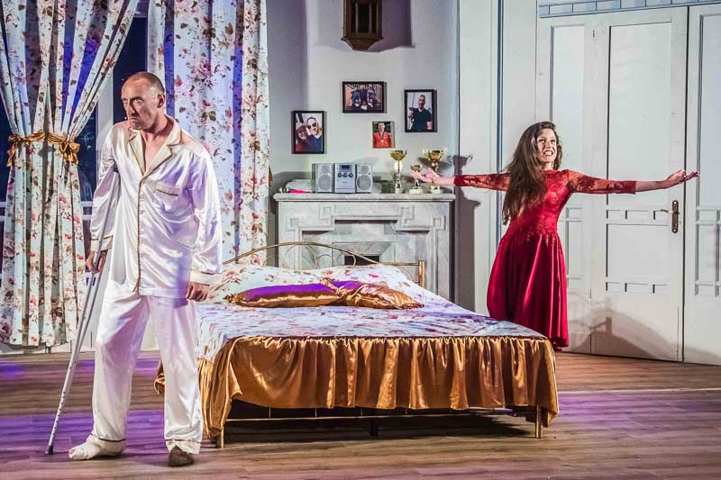 A drámát a Cervinus Teátrum nagyszínházában mutatta be úgy, hogy csak a nézőtér felére, az első 8 sorba ültetett közönséget, vagyis egy nagyon bensőséges térben folyt az előadás, de a színpad méretére szükség volt. A Vízi Színház nézőtere hatalmas, ezért izgalmas volt, hogy hogyan fogadják a nézők ezt a nagyon bensőséges darabot. Ami a legfontosabb, a nézők lélegzetvisszafojtva nézték a két és félórás előadást. Igen, kell a dráma a Vízi Színházba is, mert ha jó az előadás, a nézőt magával ragadja, ezt a Cervinus Teátrum minden évben bebizonyítja, ahogyan ez pénteken este is megtörtént.