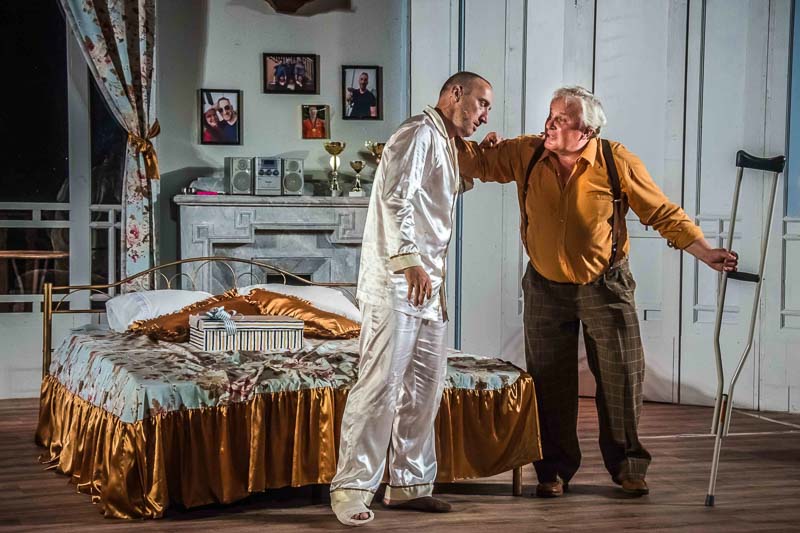 Nádházy Péter Big Daddy szerepében határozott, hiszen ő az uralkodó a családban, jókedvű, mert betegsége a múlté, megjött a lelet nincs baj. Tele életenergiával kisebbik fián próbál segíteni, mert, ha neki sikerült, Bricknek is fog. Az őszinte beszélgetés valóban őszinte. Apa és fia nem hazudik egymásnak. Nádházy Péter és Timkó János kettőse ismét zseniális, összehangolt alakítás a két színésztől. Mindkettőjüknek – férfiak lévén – nehéz érzelmeket megmutatni, mégis olyan erős érzelmi hullámra kerültek, ahonnan már nincs visszaút. Az előadás csúcspontja a jelenet.