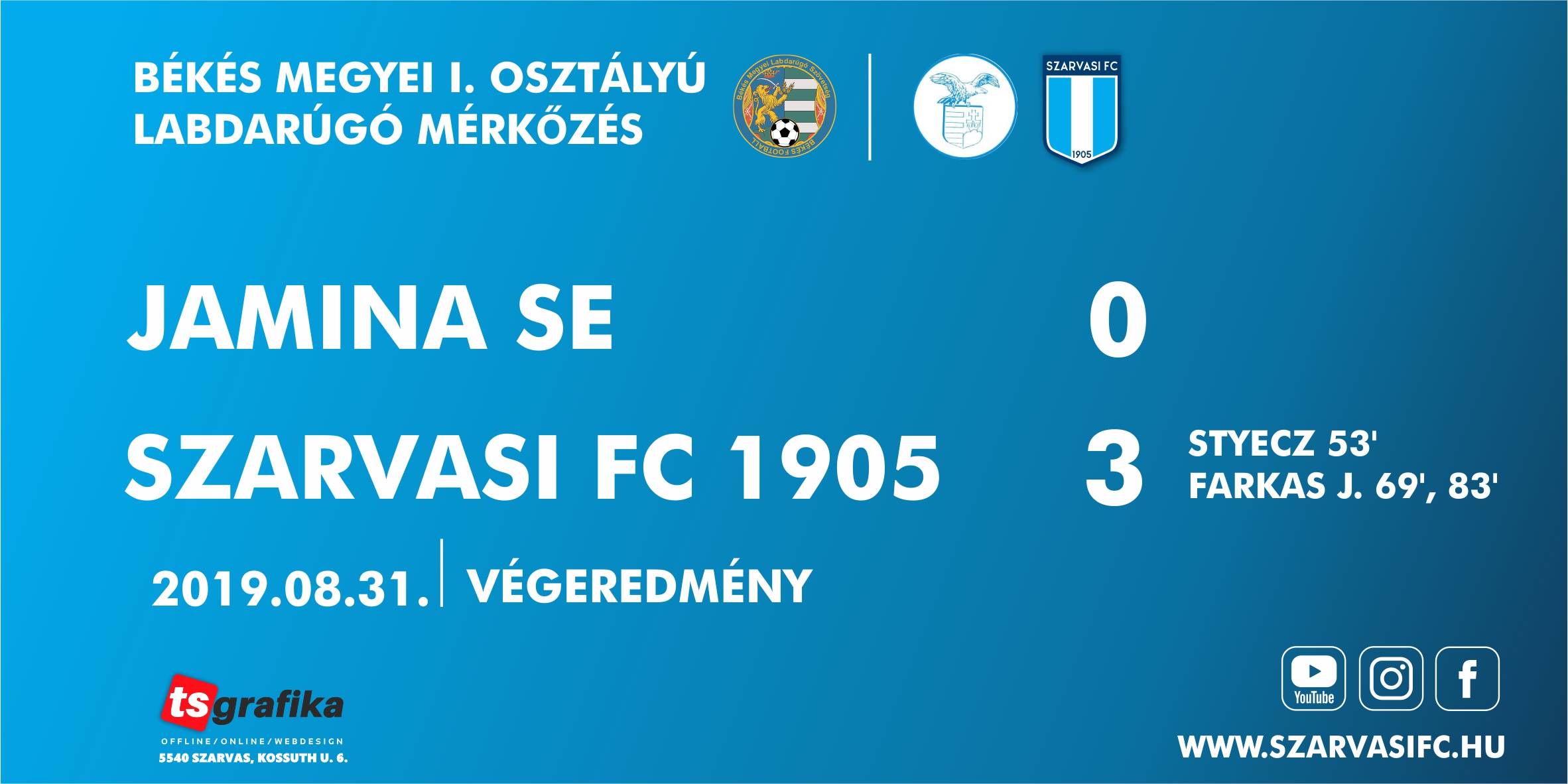 Jamina SE – Szarvasi FC ‘1905’ 0-3 (0-0)