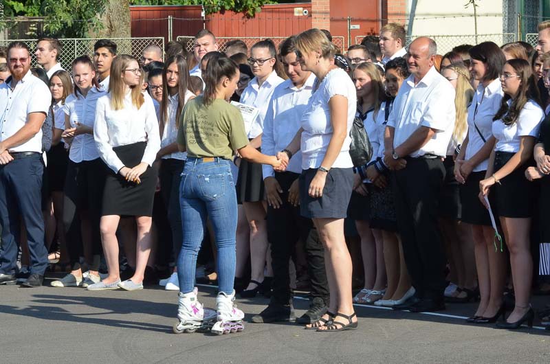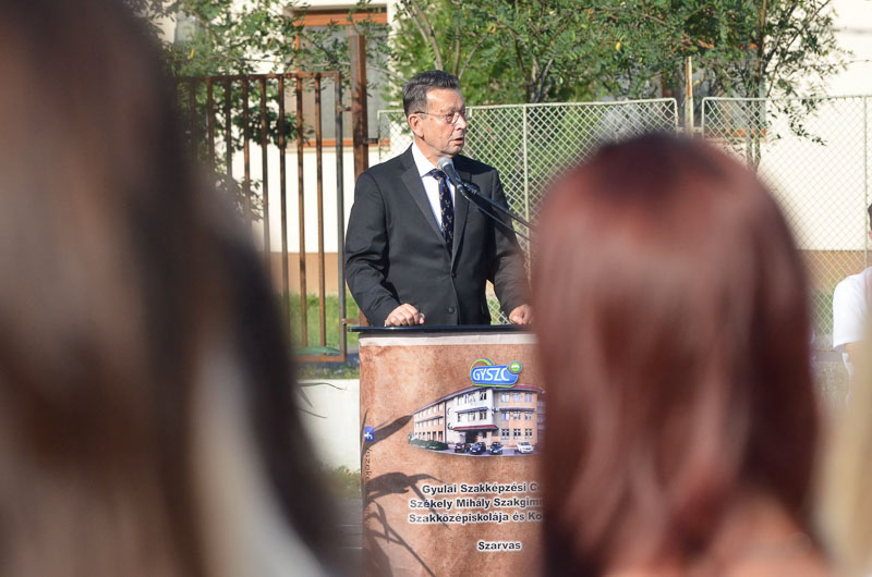 2019. szeptember 2-án, szép napsütéses időben 23 osztály sorakozott fel osztályfőnökeik vezetésével a Gyulai Szakképzési Centrum Székely Mihály Szakgimnáziuma, Szakközépiskolája és Kollégiuma tanévnyitó ünnepségén a felújított sportudvaron, és figyelte az új tanévet megnyitó ünnepi műsort. Rendezvényünket megtisztelte jelenlétével Babák Mihály, Szarvas város polgármestere, Kovács Zsuzsanna főigazgató asszony, Simon István kancellár úr, Jancsurák József főigazgató-helyettes úr, a Székely Mihály Szakképzésért Alapítványt képviselő Sonkolyné Szekerczés Margit.