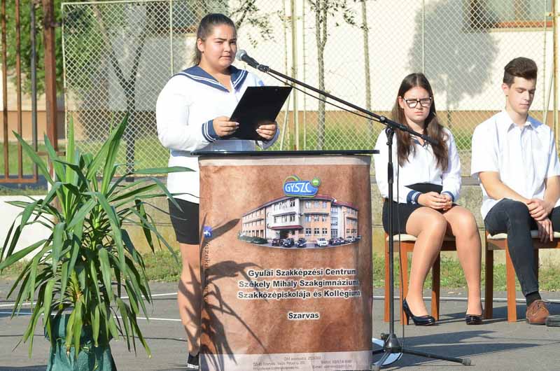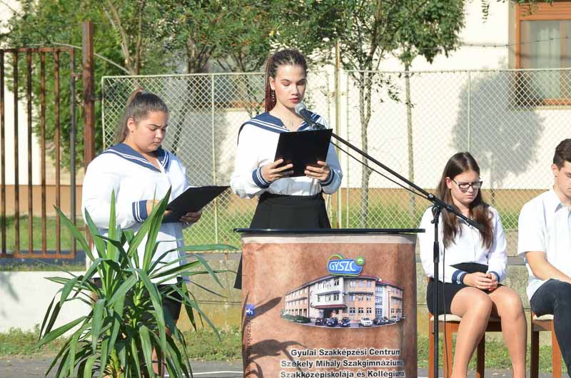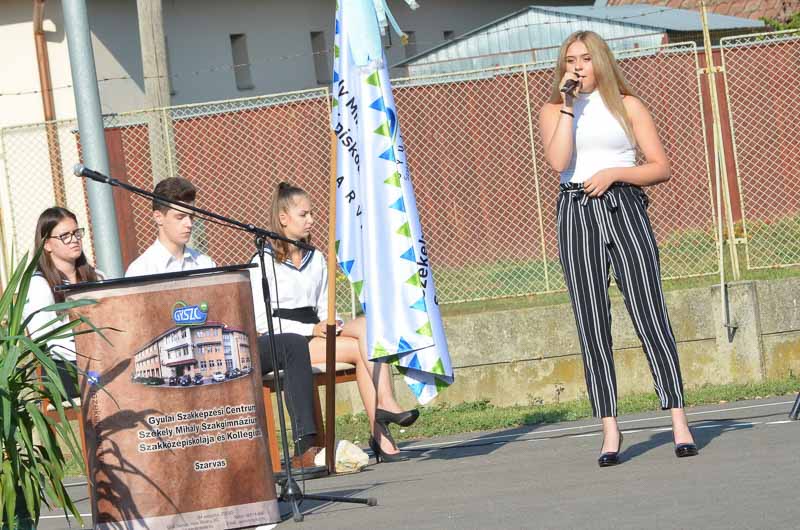 Babák Mihály polgármester úr ünnepi gondolatai után a diákok műsora következett. Moretti Gemma: Elköszön a nyár című versét Mohácsi Réka 10. évfolyamos diák mondta el, majd Ruzsa Magdi dalát Légrádi Blanka12. évfolyamos tanuló előadásában hallhatták a megjelentek.
