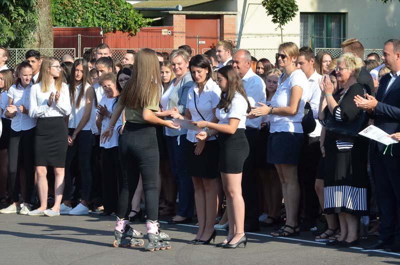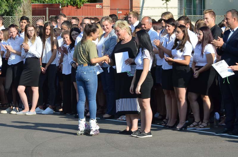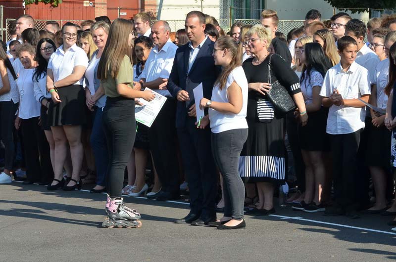 Folytatva a több éves hagyományt, a 9. évfolyamos osztályok képviselői és osztályfőnökei egy köszöntő oklevelet vehettek át – kihasználva a lehetőségeket – a görkorcsolyával közlekedő felsőbb éves lányoktól.