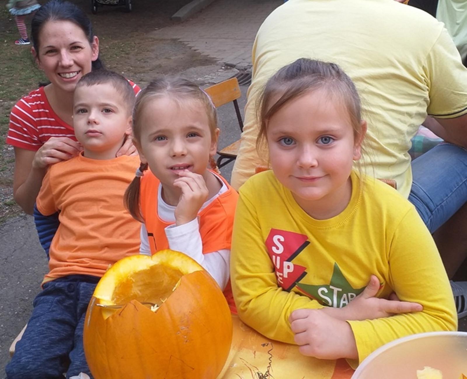 Kellemes családi délutánt avagy egy kisebb fajta tökfesztivált tudhat magáénak a Szlovák Óvoda kollektívája, akik szeptember 27-én péntek délután, a ragyogó őszi napsütésben arra invitálták az óvodásokat, tesóikat, a szülőket, kerikéket és a fáradhatatlan nagyikat, hogy éljék ki alkotóvágyaikat és a családi köteléket erősítve, hasznos időt együtt töltve tököt faragjanak. Idén is narancsszínben fürdött az óvoda barátságos udvara, ahol a kerekded tök terméseken kívül a rendezvény résztvevői is vidám sárga, zöld és narancs tökszínekbe öltöztek. Nádor Judit óvodavezető köszöntötte az igen népszerű tökfaragó program résztvevőit, majd Czibulya Zsuzsanna a Chován Kálmán Művészeti Alapiskola pedagógusa a klasszikus zenei tanszakok művelőit és felkészítő tanáraikat mutatta be a bölcsődéskorútól a nyugdíjaskorúig jelen lévő érdeklődőknek. A zene világnapja alkalmából is szólt a kis koncertjük a tujákkal körülvett, napsütésben fürdő udvaron. Így megszólalt Bartus Bátor zongorajátéka Iváncsó Viola felkészítésében. Hallhattuk Szemennyei Kevint nagybőgőzni, akit Körösparti Ágnes instruált. Zenélt még Bugán Bori gitáros lányka is, ő Molnár János tanítványa. Hegedűn játszottak Sebjan-Farkas Bianka és Misúr Marcell őket Czibulya Zsuzsanna hegedűtanár készítette elő a bemutatkozásra. Iváncsó József az öttagú, vidám dallamokkal szórakoztató harmonika együttesét mutatta be, akik Folytán Fanni, Somogyi Máté, Tóth Bence, Ruzsinszki Balázs és Juhász Krisztián voltak. A környezeti nevelés részeként, az iskola gyakorlókertjében bio növényként megtermett, a gondos kis kezek munkájától kétszer olyan édesre érett „tekvicákból” kóstoló is akadt az udvaron a zeneszó mellé bőven. Az iskola kemencéjében egész nap ropogott a tűz, Házi Jani bácsi a tepsiket forgatta és a sütést irányította. Míg a tanárok és a nagyobb gyerekek a tökök előkészítésében, a tisztításban és a magvalásban segítettek. A tanulók órák közben csodájára jártak a jó illatok forrásának, egyesek a kemence mellett énekeltek, mások csak érdeklődtek. Így fordult elő az, hogy TÖKNAPON a szlovák iskola apraja-nagyja a maguk által termesztett tököt majszolgatta. A legkisebbek szülei kreativitásuk legjavát nyújtva készítették el erre a rendezvényre a tökös álom ételeiket, teret adva az ínycsiklandó édességek és torták mellett a reform ételeknek és a salátáknak is. A sült tökből készült pite, lepény, borzas, maffin, stangli, torta, rétes, golyó, bögrés, kuglóf, saláta és majd harminc féle földi jó, amit az óvó és dajka nénik szolgáltak fel az asztaloknál alkotó tökvájóknak. Faragás, szobrászkodás közben jól elkülönültek az alkotói stílusok, ahol megmutatkozott, hogy ki a macskarajongó, hogy ki a Pókember és Batman párti, ki szereti a villogó fogakat, vagy a fültől-fülig érő mosolyokat.