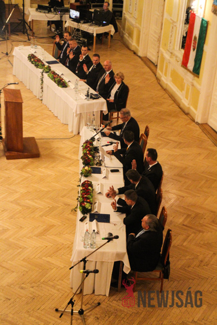 A folytatásban a képviselő-testület tagjai és a polgármester ünnepélyes esküt tettek, majd aláírták az esküokmányokat.