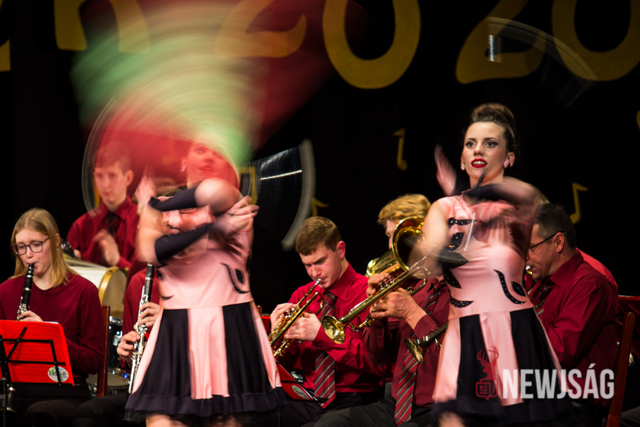 A filmzenéken, köztük Nino Rota két híres filmhez, a Keresztapához és a Rómeó és Júliához írt slágerén és dixielandeken keresztül érkezett az évbúcsúztató a végéhez, amikor Vári Ferenc és Szabados-Tóth Gábor maguk mellé szólította Soós Tibort, Hunya Jolánt, Csasztvan Andrást, Kiss Istvánt és dr. Boross Istvánt, aki húsz éve töretlen támogatója a zenekarnak, hogy pezsgős koccintással kívánjanak boldog új évet a közönségnek, hogy majd a zenekar Strauss elmaradhatatlan indulójával, a Radetzky March-sal köszönjön el a közönségtől.