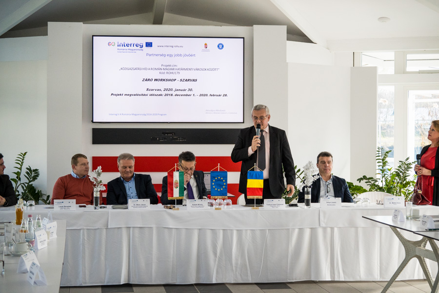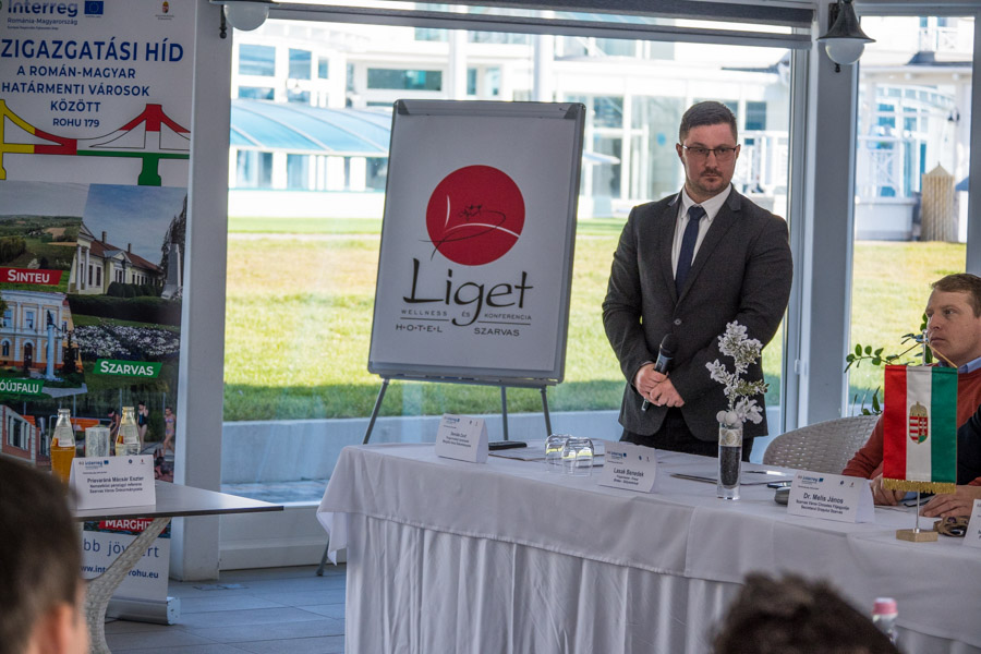 a Liget Wellness és Konferencia Hotelben csütörtökön megtartott utolsó szarvasi projekteseményen Babák Mihály polgármester kifejtette a határmenti együttműködésre vonatkozó lehetőségeket.