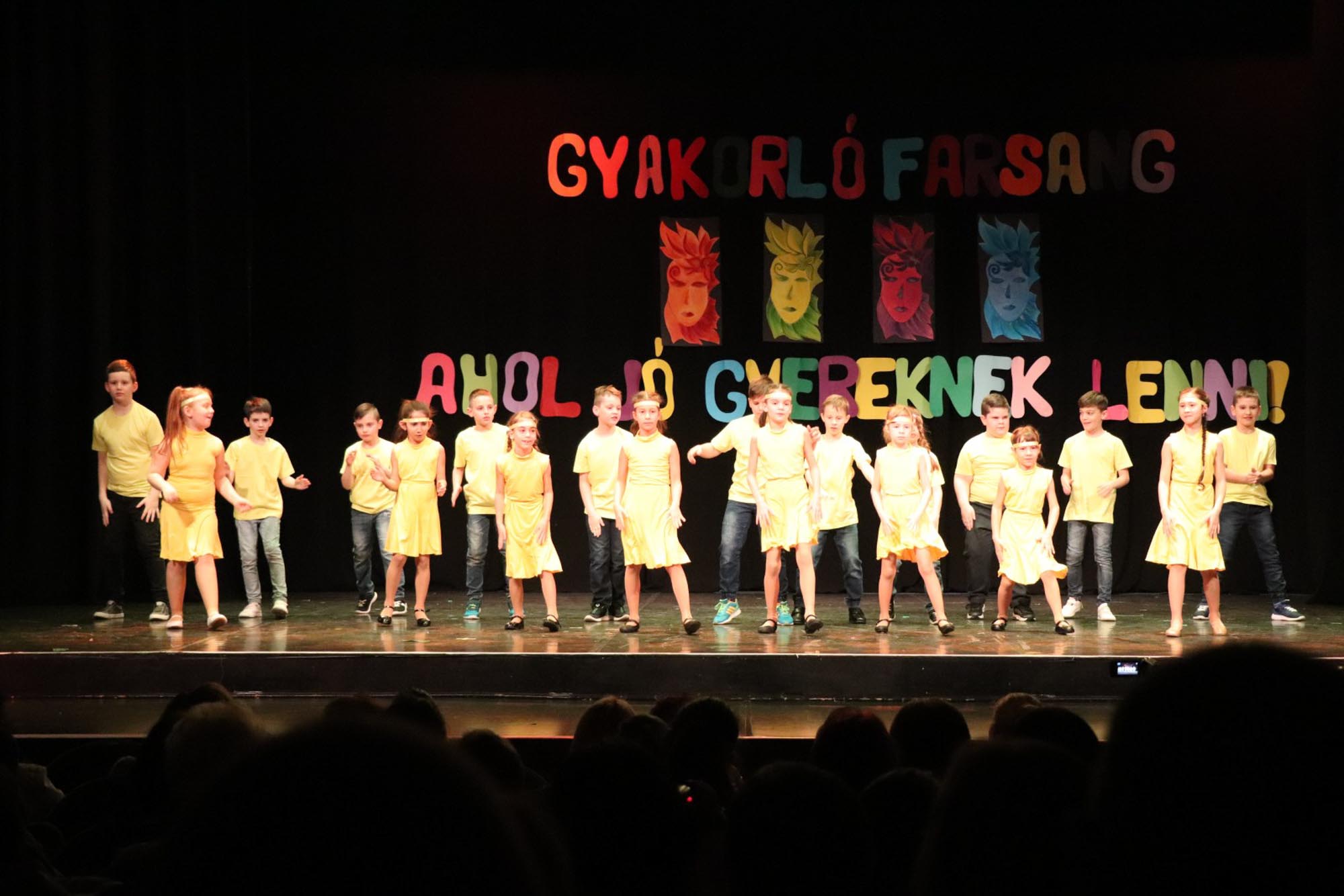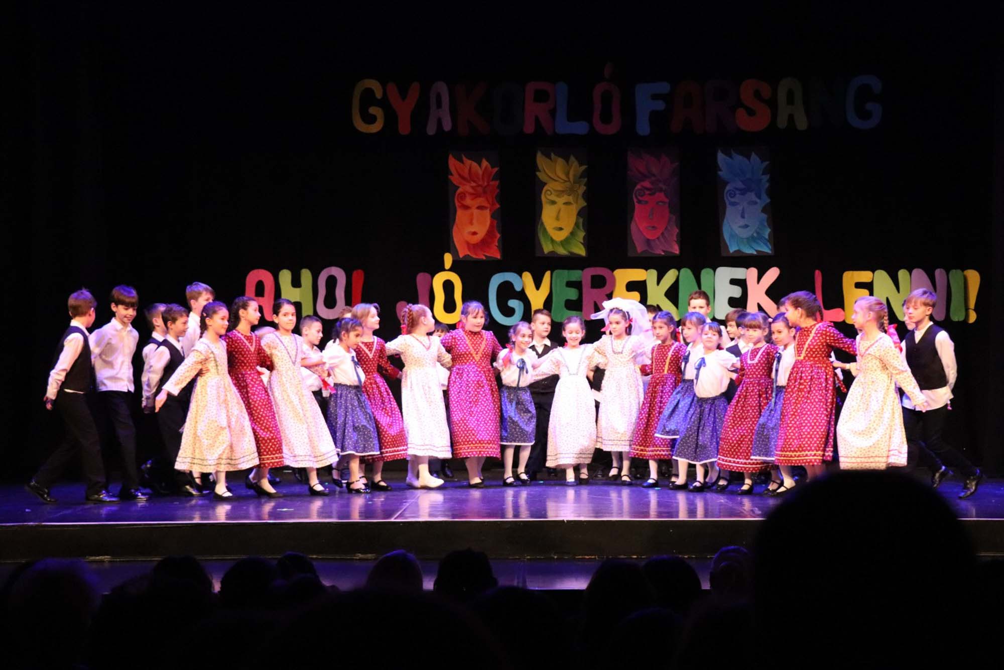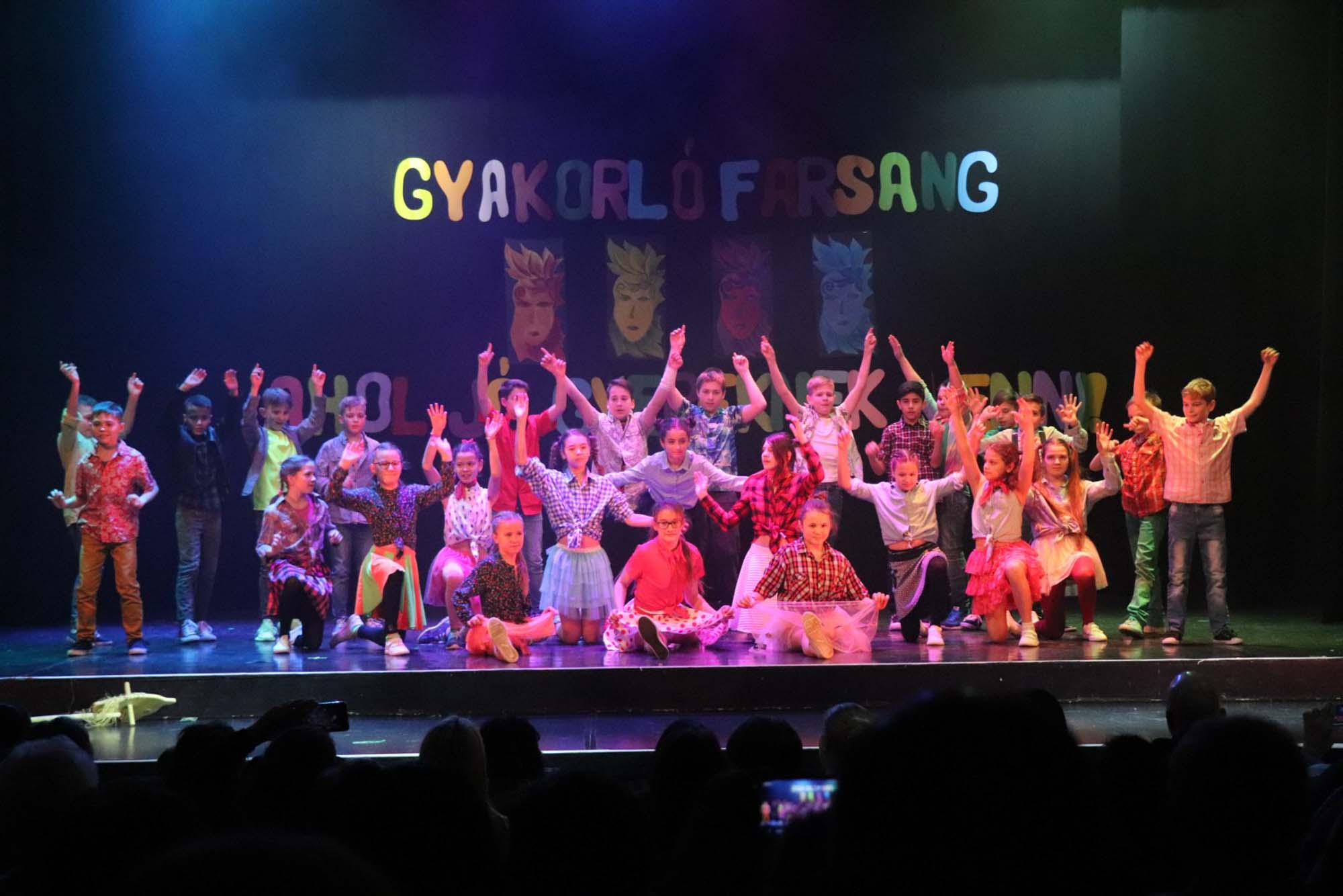 Forgatag, jókedv és mulatozás, ami valódi gyermekhanggal búcsúztatta a telet 2020-ban is, a Gyakorlóban. A Vízkereszt és a Húsvéti nagyböjt közé beékelődött ünnepnap minden évben várt eseménye a Gyakorlónak, igazi karneváli hangulatot varázsolva a színház zsúfolásig telt termébe. Hagyomány és újszerűség… ez a kettő, ami minden évben a farsangi gálát vezérfonalként meghatározza, így idén a második osztályosok hagyományosan egy néphagyomány őrző műsort mutattak be, ahol a párválasztás és a házasodás volt a központi téma, jó kis csujogatókkal, lakodalmas játékkal. A 2.A és B osztályosok felrúgtak minden szabályt, és picit „gúnyolódhattak is”, ami a farsangba most belefért.