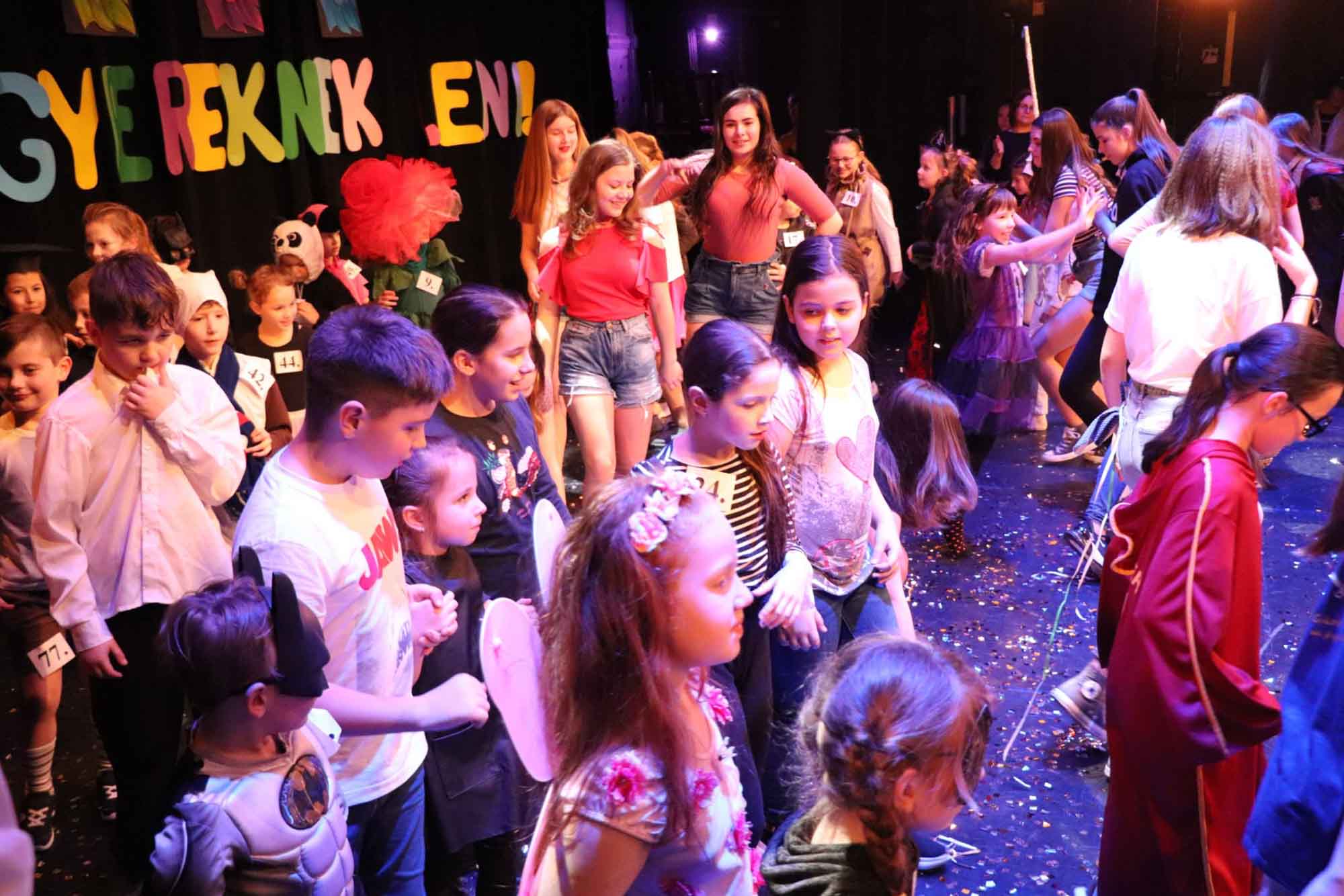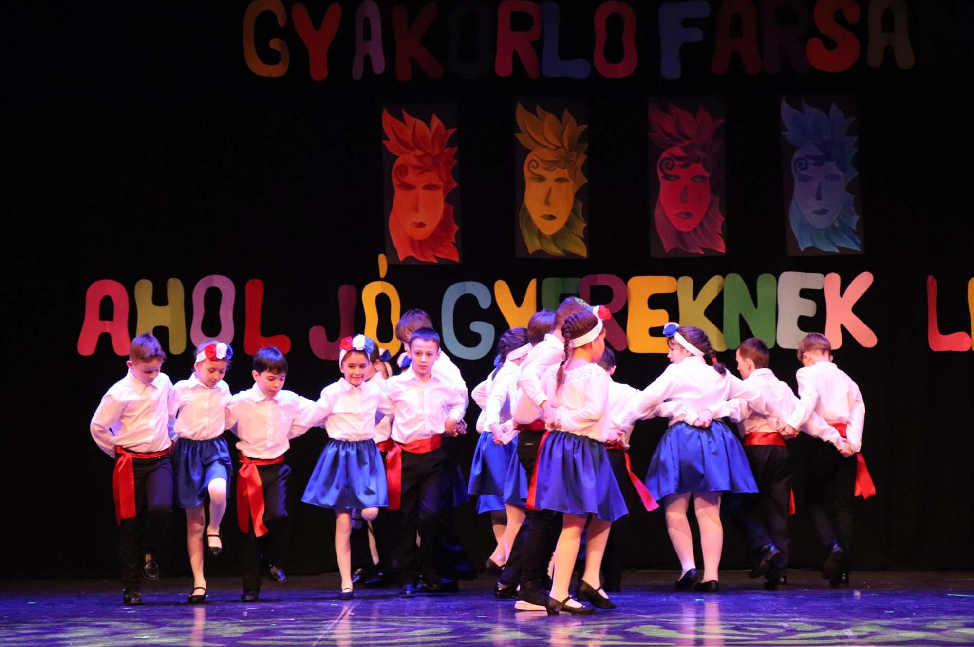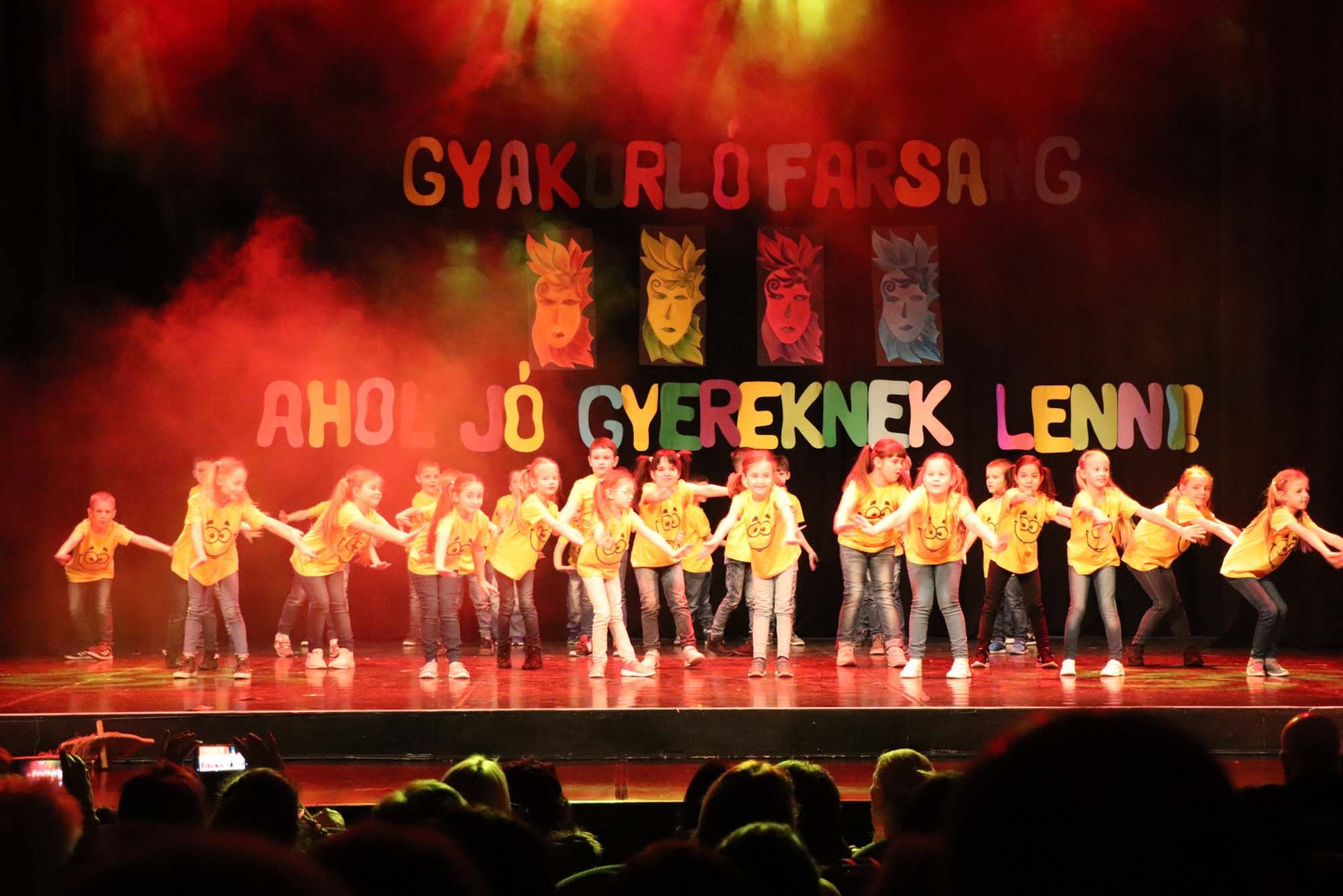 Forgatag, jókedv és mulatozás, ami valódi gyermekhanggal búcsúztatta a telet 2020-ban is, a Gyakorlóban. A Vízkereszt és a Húsvéti nagyböjt közé beékelődött ünnepnap minden évben várt eseménye a Gyakorlónak, igazi karneváli hangulatot varázsolva a színház zsúfolásig telt termébe. Hagyomány és újszerűség… ez a kettő, ami minden évben a farsangi gálát vezérfonalként meghatározza, így idén a második osztályosok hagyományosan egy néphagyomány őrző műsort mutattak be, ahol a párválasztás és a házasodás volt a központi téma, jó kis csujogatókkal, lakodalmas játékkal. A 2.A és B osztályosok felrúgtak minden szabályt, és picit „gúnyolódhattak is”, ami a farsangba most belefért.