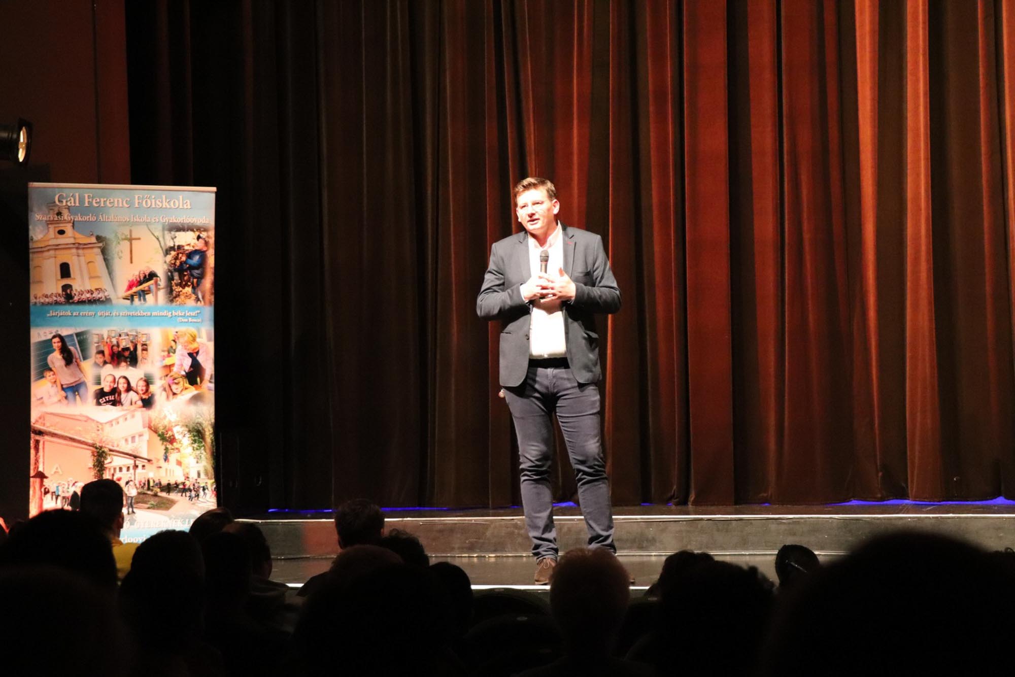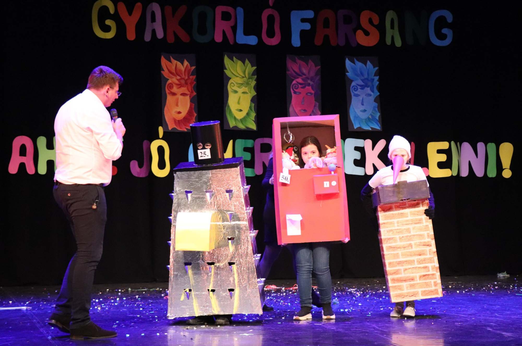 Bíró Gyula intézményvezető megköszönte a szülők mindenkori támogatását, és örömmel nyugtázta, hogy idén is olyan farsangi produkciók kerülnek színpadra, amelyek megmutatják a Gyakorlós szív és gondolat mindenkori dobbanását. Köszönte munkatársainak a befektetett többletmunkát, a rengeteg hozzáadott értéket, és a fenntartó Gál Ferenc Főiskolának, hogy a Gyakorlóban nemcsak gyereknek jó lenni, hanem pedagógusnak, nevelőnek is… Tréfásan megjegyezte, hogy a GFF az egyetlen intézmény Békés megyében, amely háromtól százhárom éves korig szolgál és szolgáltat az óvodásoktól a főiskolások graduális és posztgraduális képzésein keresztül. Az igazgatói beszédet többször is „megzavarták” kicsi, bohókás táncos manók, és tűzriadót is el kellett rendelni a beszéd alatt, amit a hetedik osztályosok tűzoltó csapata megfelelően kezelt, amiben Kohut Pál tűzoltó százados úr sem talált volna hibát.