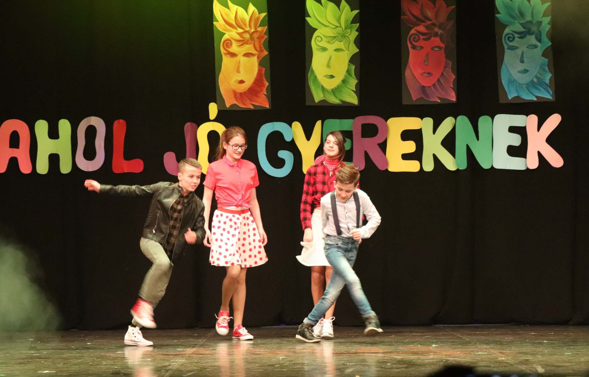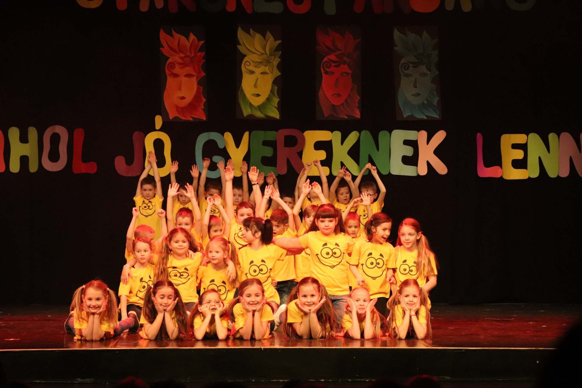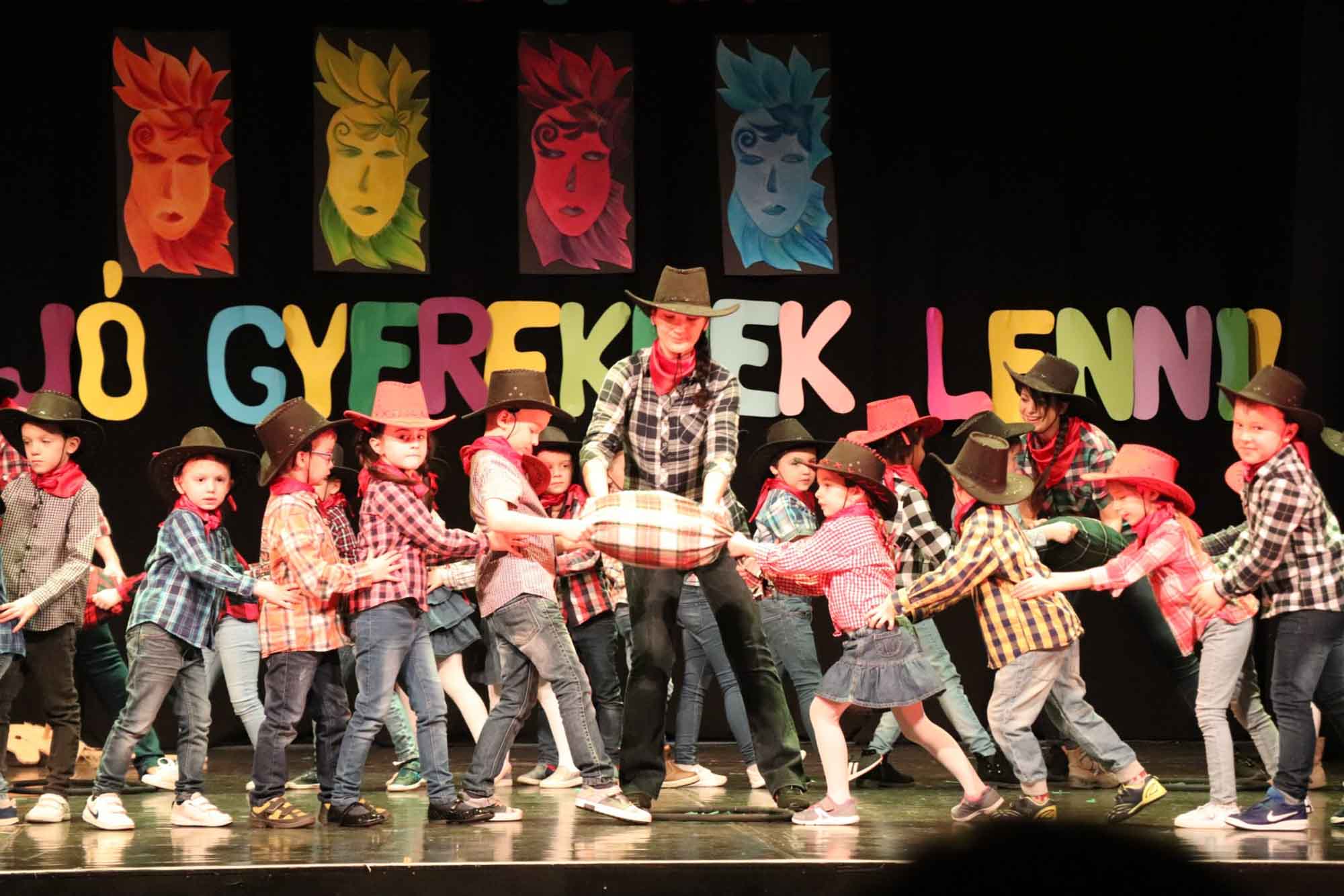 A Gyakorló ovi-suli nagycsoportos óvodásai kedves kis banditákként őrizték a kincseiket, és az óvodapedagógus-seriffekkel fergeteges country hangulatot varázsoltak a színpadra. Az első osztályosaink mosoly-parti forgatagot teremtettek; a vidámság, a boldogság és a kedvesség jelét átnyújtva a közönség számára a színpadon. Már izzott is a boogie a lábakban, amikor az ötödik osztályosok rock and roll csapata elárasztotta a színpadot, olyan jampi frizurákkal, ruhákkal és ritmussal, ami megidézte a legkeményebb „FenyőMikikoncerteket”.