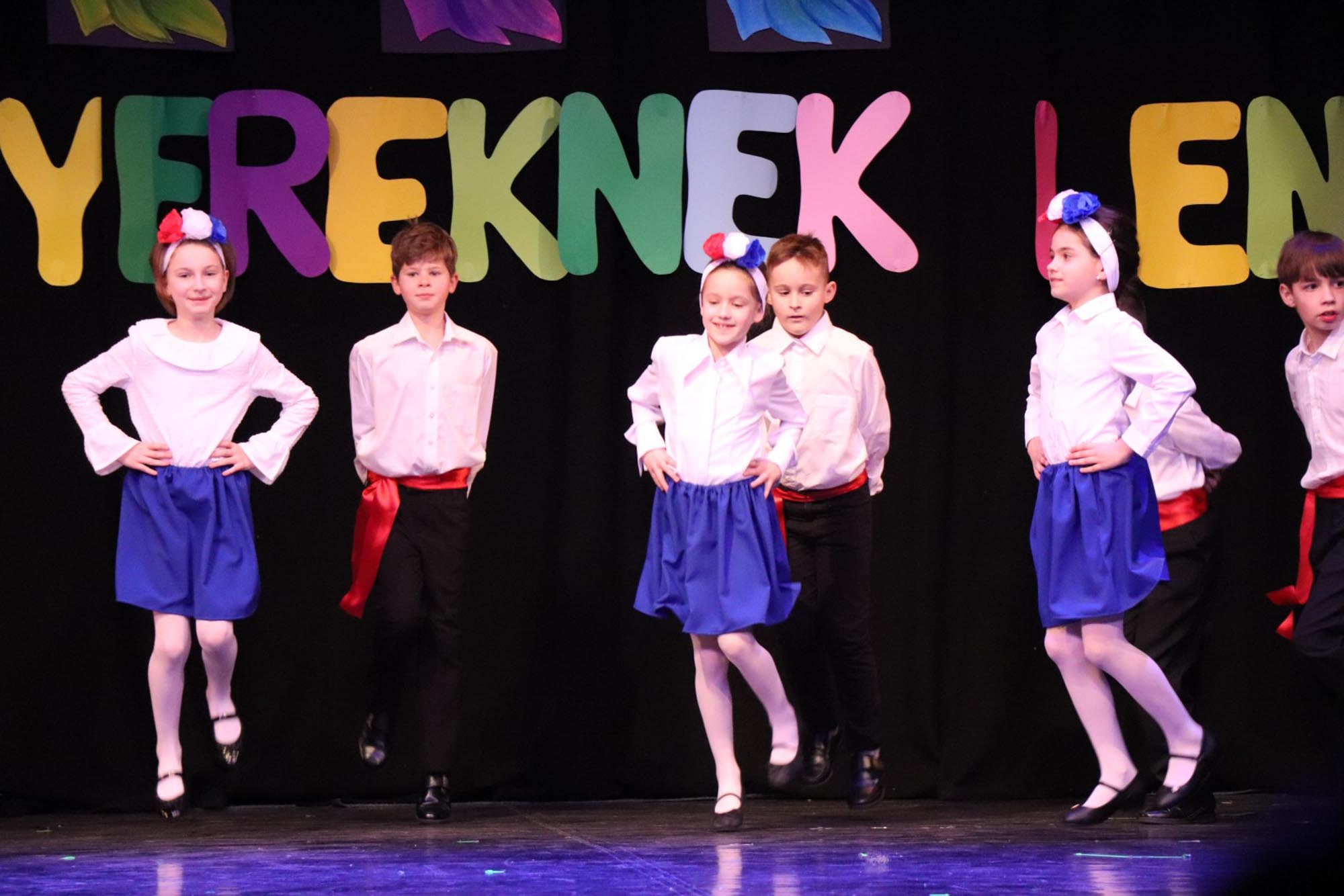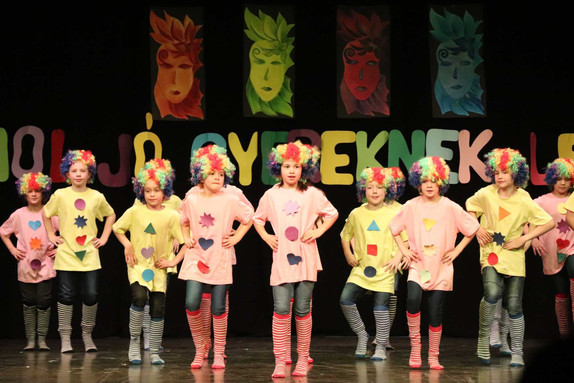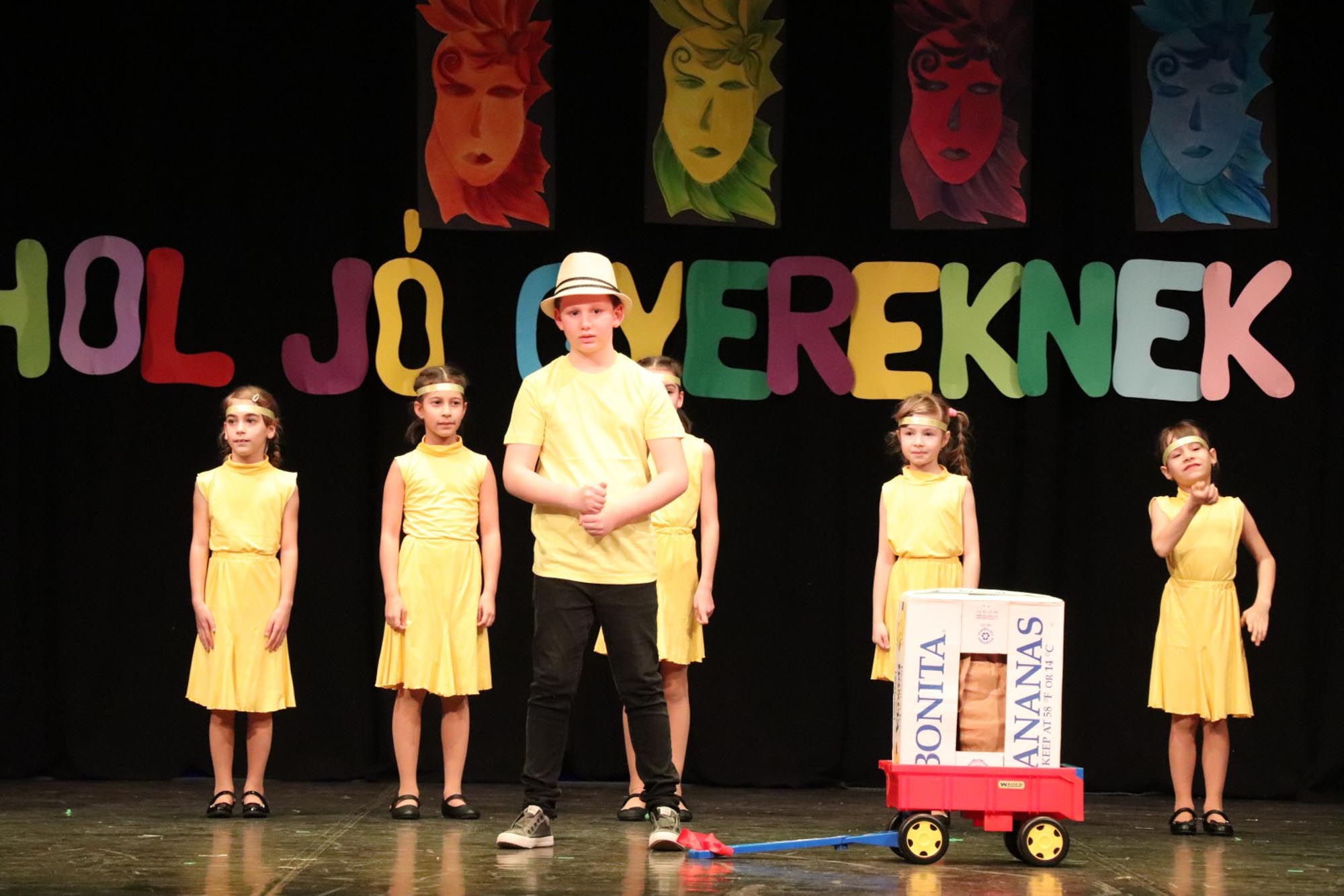 A Gyakorló ovi-suli nagycsoportos óvodásai kedves kis banditákként őrizték a kincseiket, és az óvodapedagógus-seriffekkel fergeteges country hangulatot varázsoltak a színpadra. Az első osztályosaink mosoly-parti forgatagot teremtettek; a vidámság, a boldogság és a kedvesség jelét átnyújtva a közönség számára a színpadon. Már izzott is a boogie a lábakban, amikor az ötödik osztályosok rock and roll csapata elárasztotta a színpadot, olyan jampi frizurákkal, ruhákkal és ritmussal, ami megidézte a legkeményebb „FenyőMikikoncerteket”.