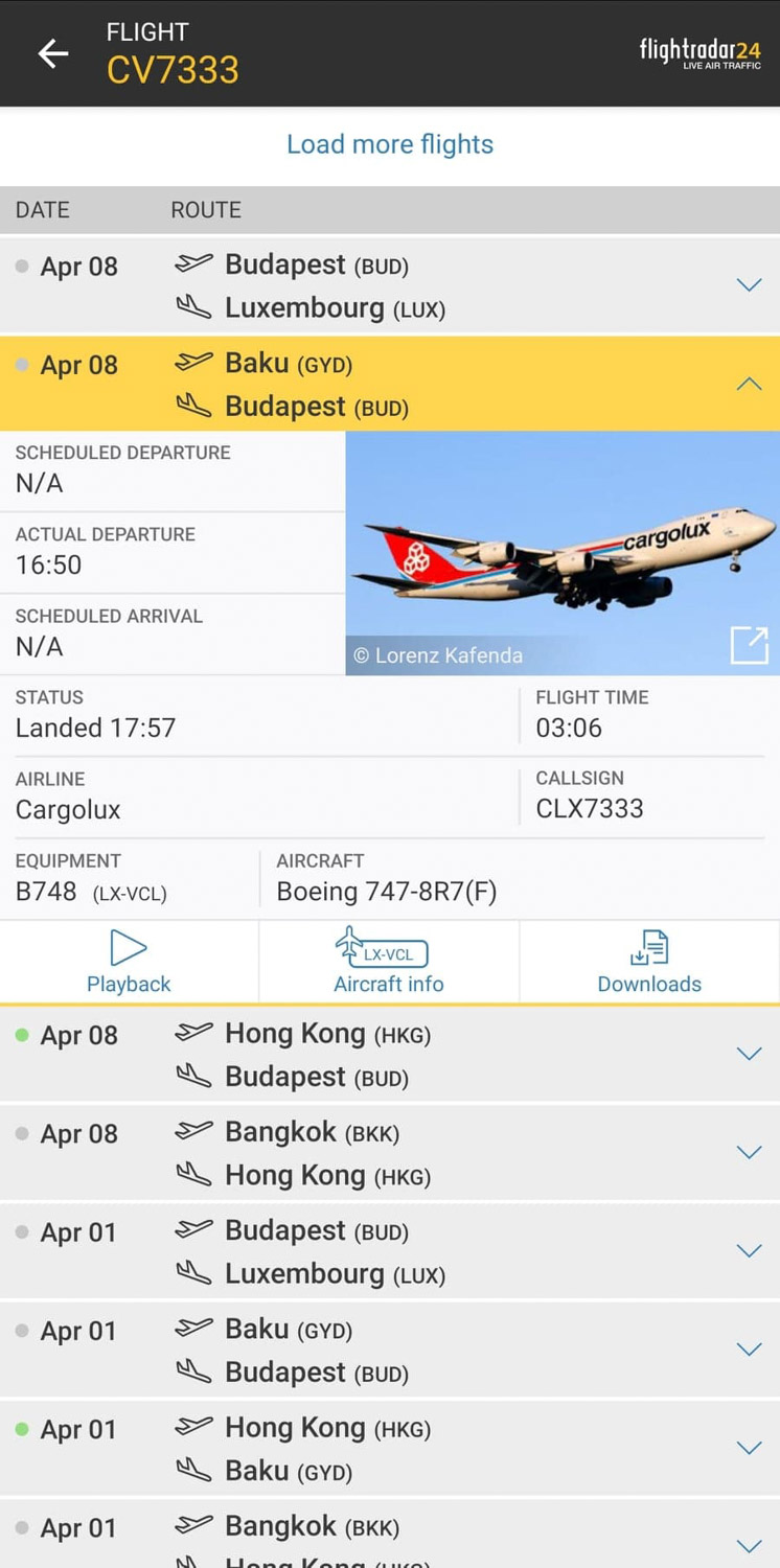 3.) A Cargolux menetrendszerinti járata négyhajtóműves Boeing 747-es. Érdekesség, hogy amíg az utasszállítók alig közlekednek, a cargo járatok felértékelődtek és több jön-megy mint egy átlagos héten.
