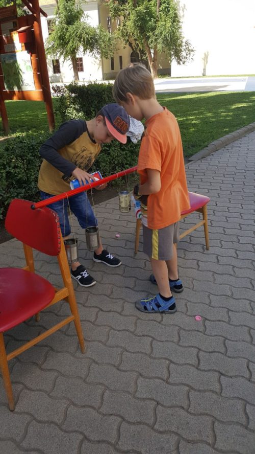 A tábori élet zenés tornával kezdődött, majd sportjátékok tanulásával folytatódott. A gyerekek izgatottan versenyeztek, – vajon ki talál bele többször a hulladékok hasznosításával készült célbadobós játékokba. A tanító nénik megtanították gyermekkoruk népszerű játékait, a „gumizás” játékot, valamint az ugróiskolák kevésbé ismert változatait. Tanítványaink gyalogtúrán és kerékpártúrán is edzették testüket. Az uszodai rajtkőről indult a váltóverseny, ahol nagy csatában dőlt el, melyik csapat a leggyorsabb úszó. Fiúk és lányok körében nagyon népszerűvé vált a Floorball, amitől a hét minden napján hangos volt az intézmény udvara.
