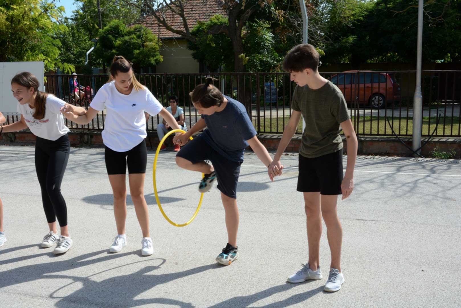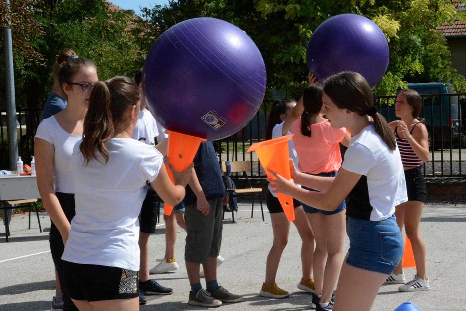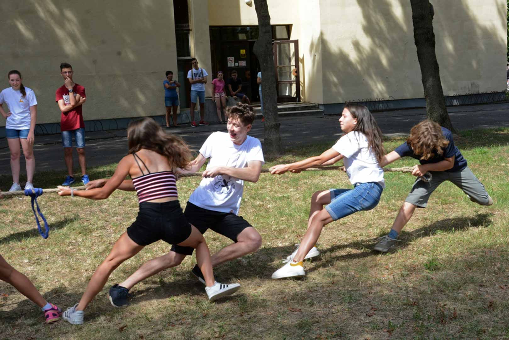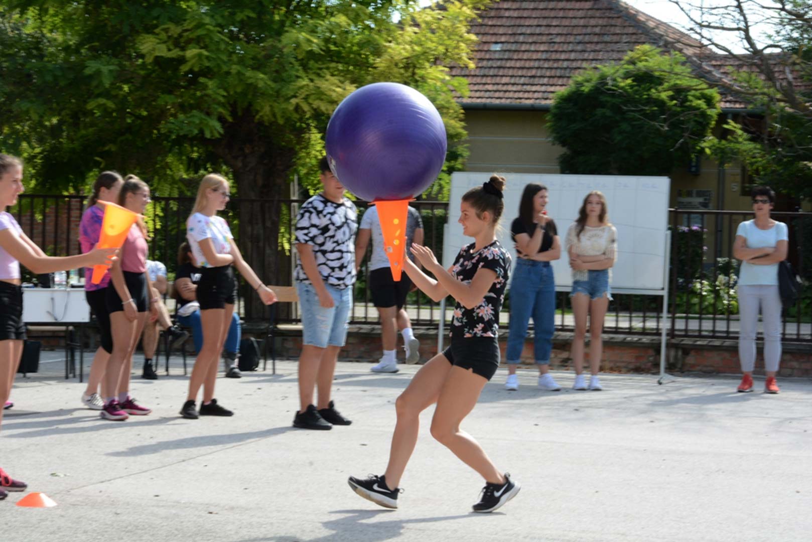 Az utolsó délelőttön a diákönkormányzat végzős tagjai által szervezett versenyen ügyeskedhettek az osztályok a gimnázium sportpályáján. Sok feladat nevetésbe fulladt, hiszen ilyenkor nem a versengés, hanem inkább a nevetés a lényeg. Egy másik helyszínen érdekes csapatépítő és activity feladatokat oldhattak meg a gyerekek. Fontos volt a csapatmunka, a megismerés és az egymásra figyelés. Az utolsó programként még a tankönyveket is megkapták az osztályok és bejelentkeztek az iskola informatikai rendszerébe.