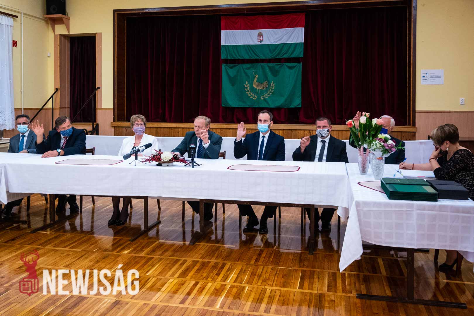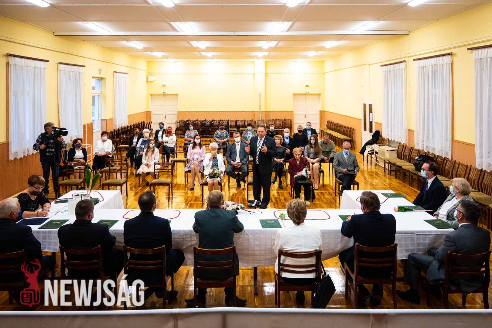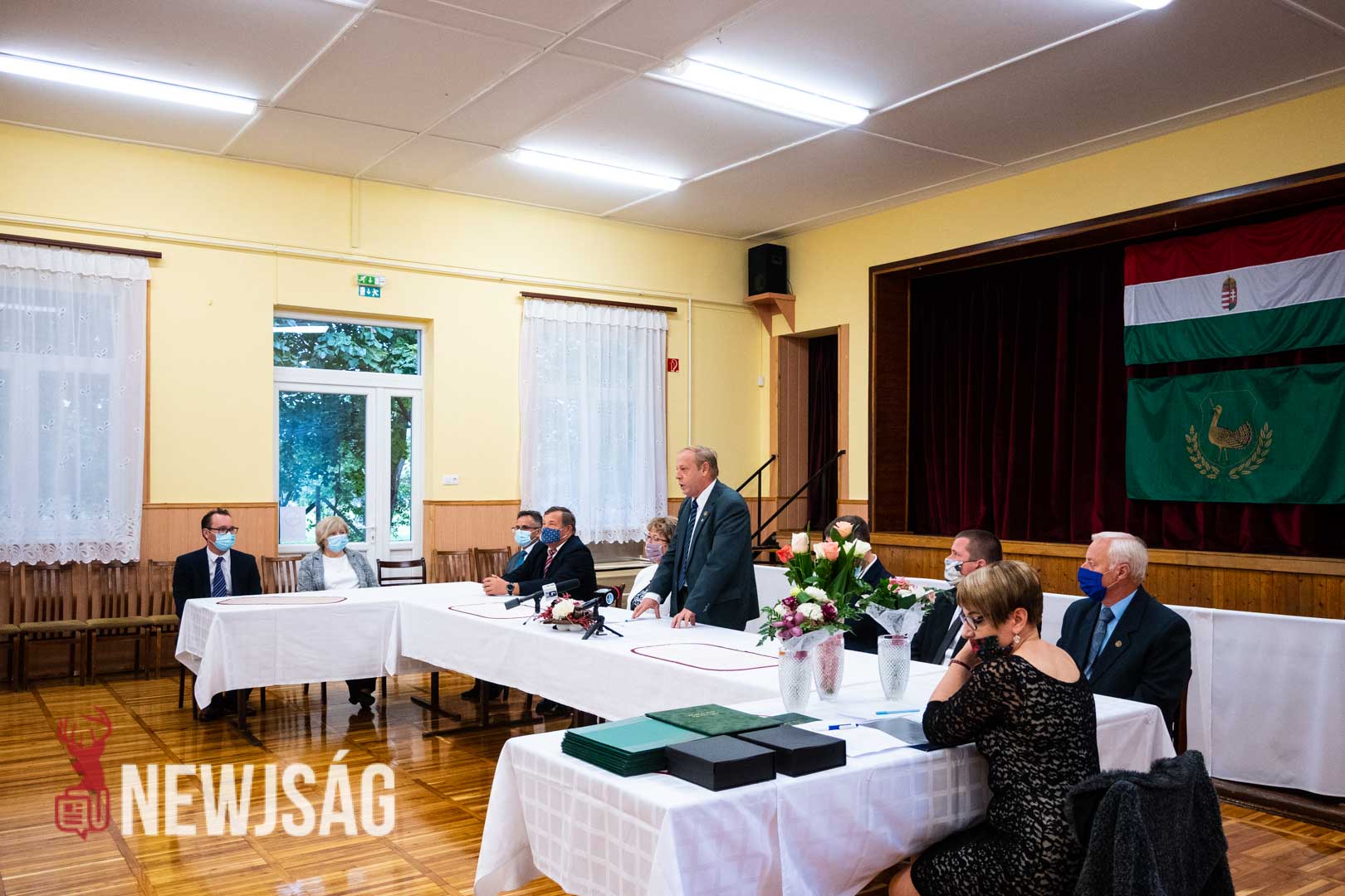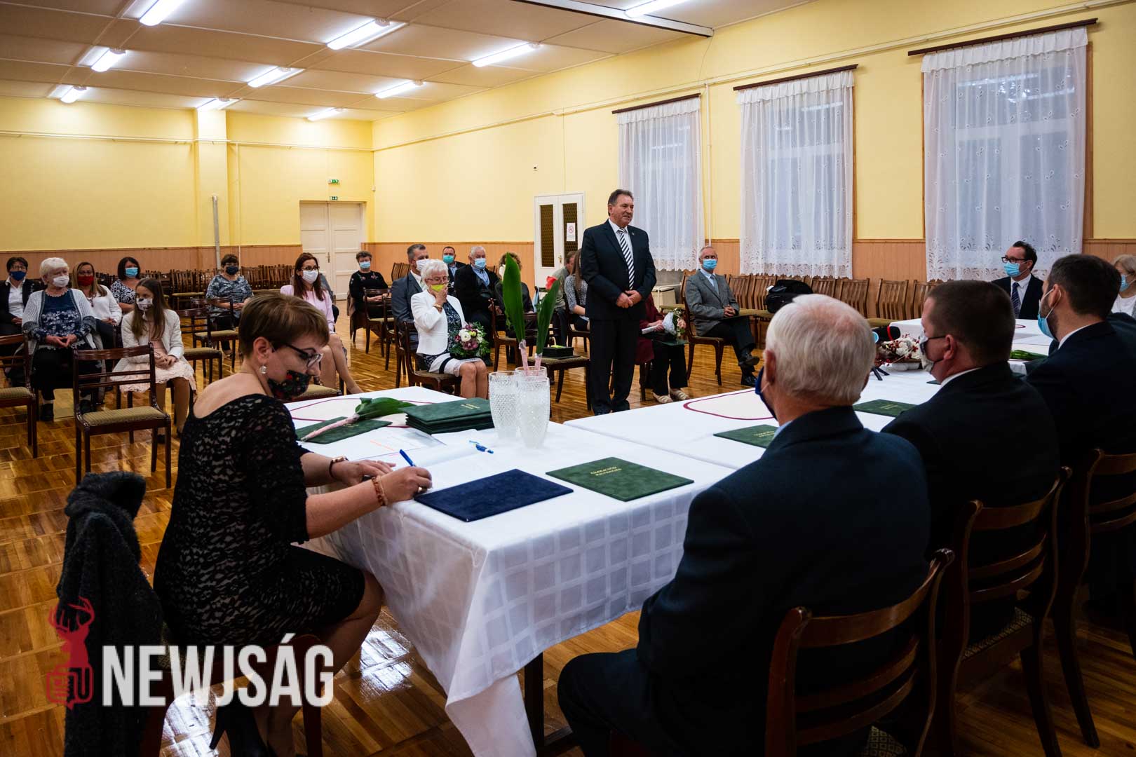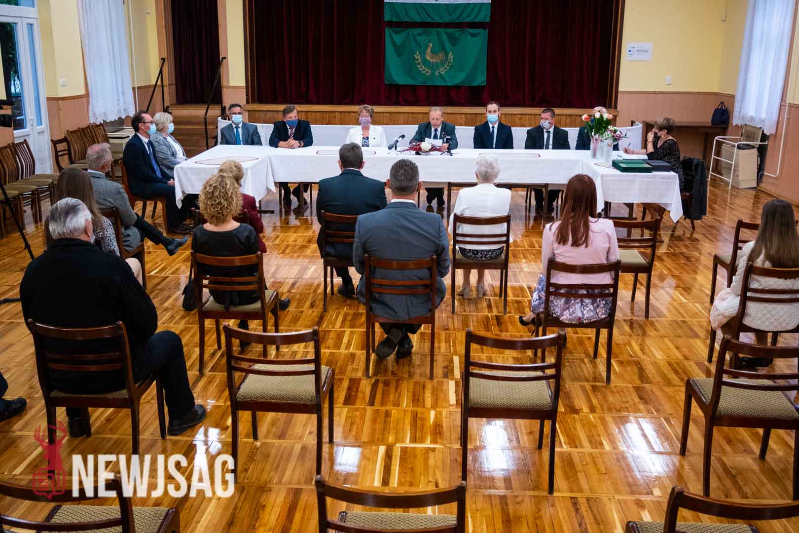 Molnár József polgármester köszöntőjével kezdődött a tegnapi ünnepi testületi ülés Csabacsűdön. A helyszín ezúttal az Eötvös József Művelődési Ház volt, ami lehetőséget adott a biztonságos távolság megtartására.
