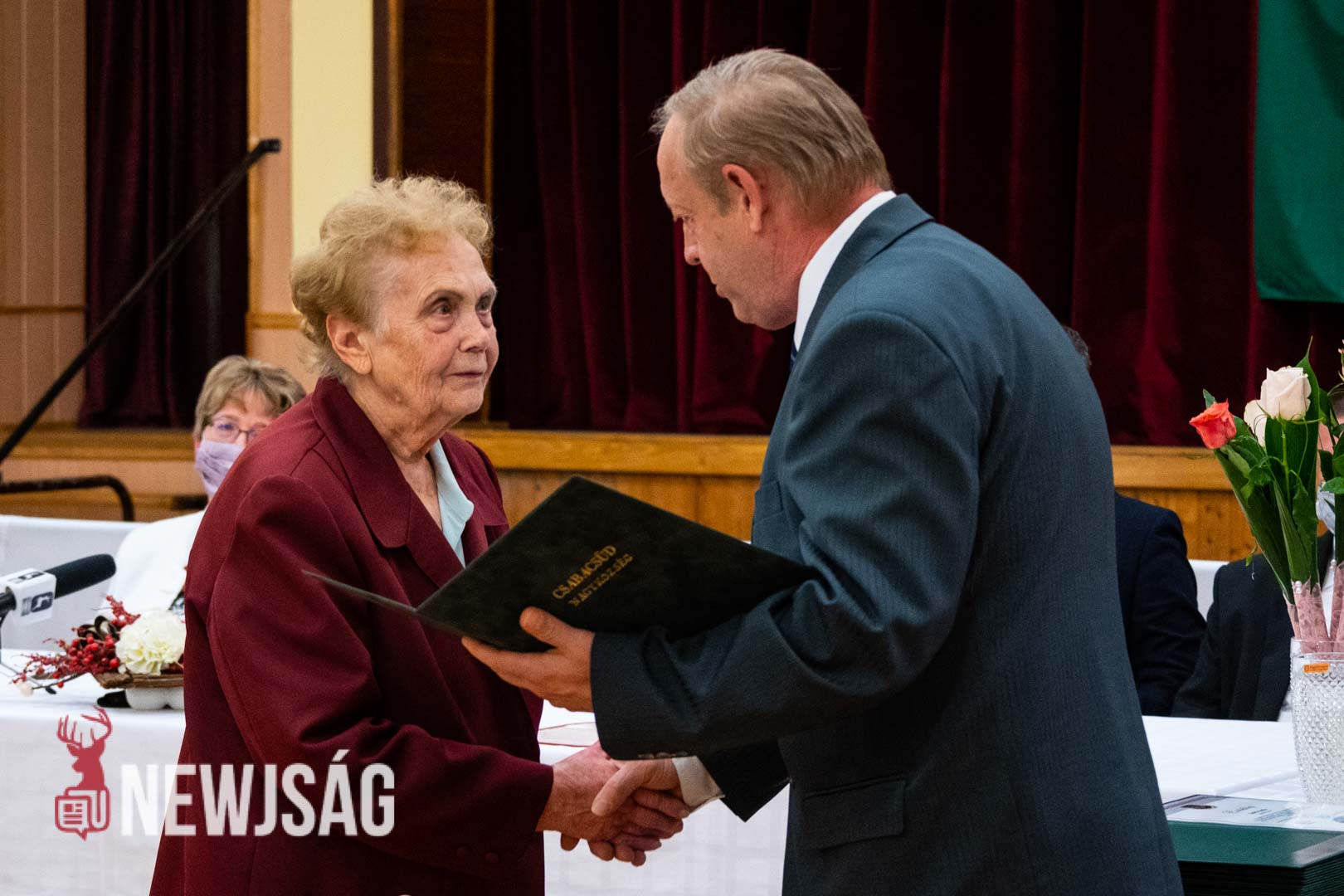 Varga Mihályné Erzsike néni a meghatódottságtól nehezen találta a szavakat. 47 éve úgy került Csabacsűdre, hogy a férjén kívül senkit sem ismert. Vb-titkár volt egészen 1990-ig, majd Örménykúton jegyző. A lakosság tisztelte tudását, elfogadta véleményét, elismerte munkáját. 2002 óta a helyi választási bizottság tagja, majd elnöke.