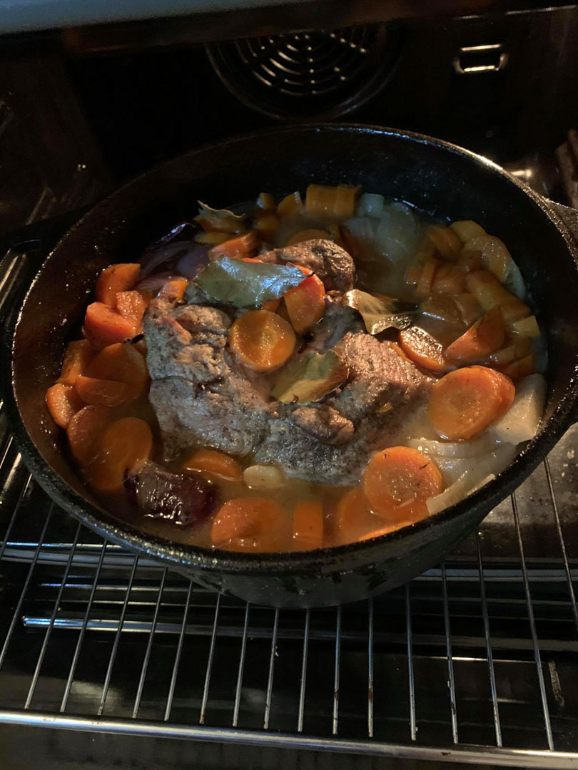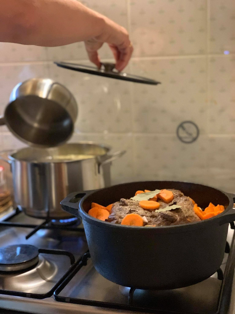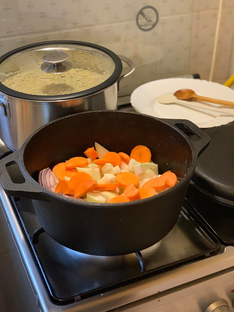 Leírom az egyik kedvenc ételünket, hátha valakinek kedve támad elkészíteni. Nem túl bonyolult, de éppen ebben van a nagyszerűsége, viszont egy fedeles öntöttvas lábas jó, ha van hozzá (esetleg el tudom képzelni cserépedénnyel is, bár úgy még nem próbáltam).