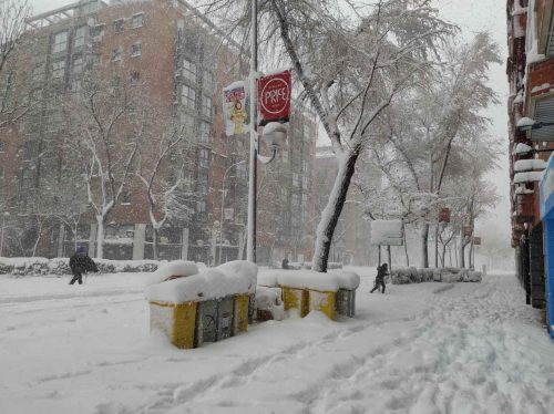 Előre beharangozták, hogy az “évszázad havazása” jön, de ezen mindenki csak mosolygott. Mióta én itt élek, úgy 10-11 éve egyszer esett a hó Madridban, ami legfeljebb egy centis volt és tíz perc alatt el is olvadt. Ezek után az évszázad havazása kifejezést mindenki úgy gondolta, hogy talán most lesz akár öt, ad absurdum tíz centi is, és az megmarad vagy fél órán át. Erre leesett több mint fél méter hó, amivel a madridiak egyáltalán nem tudtak mit kezdeni. Aztán két nap múlva jött a fagy, de még szinte mindenhol ott volt a hó érintetlenül, ami – ahogy kell – ráfagyott az utakra, most már tényleg letakaríthatatlanul. Állítólag ekkora hó vagy 50 éve volt utoljára.
