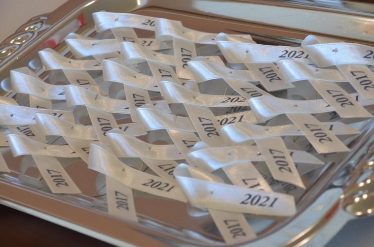 Igazgató asszony beszéde után az osztályfőnökök feltűzték a szalagot: