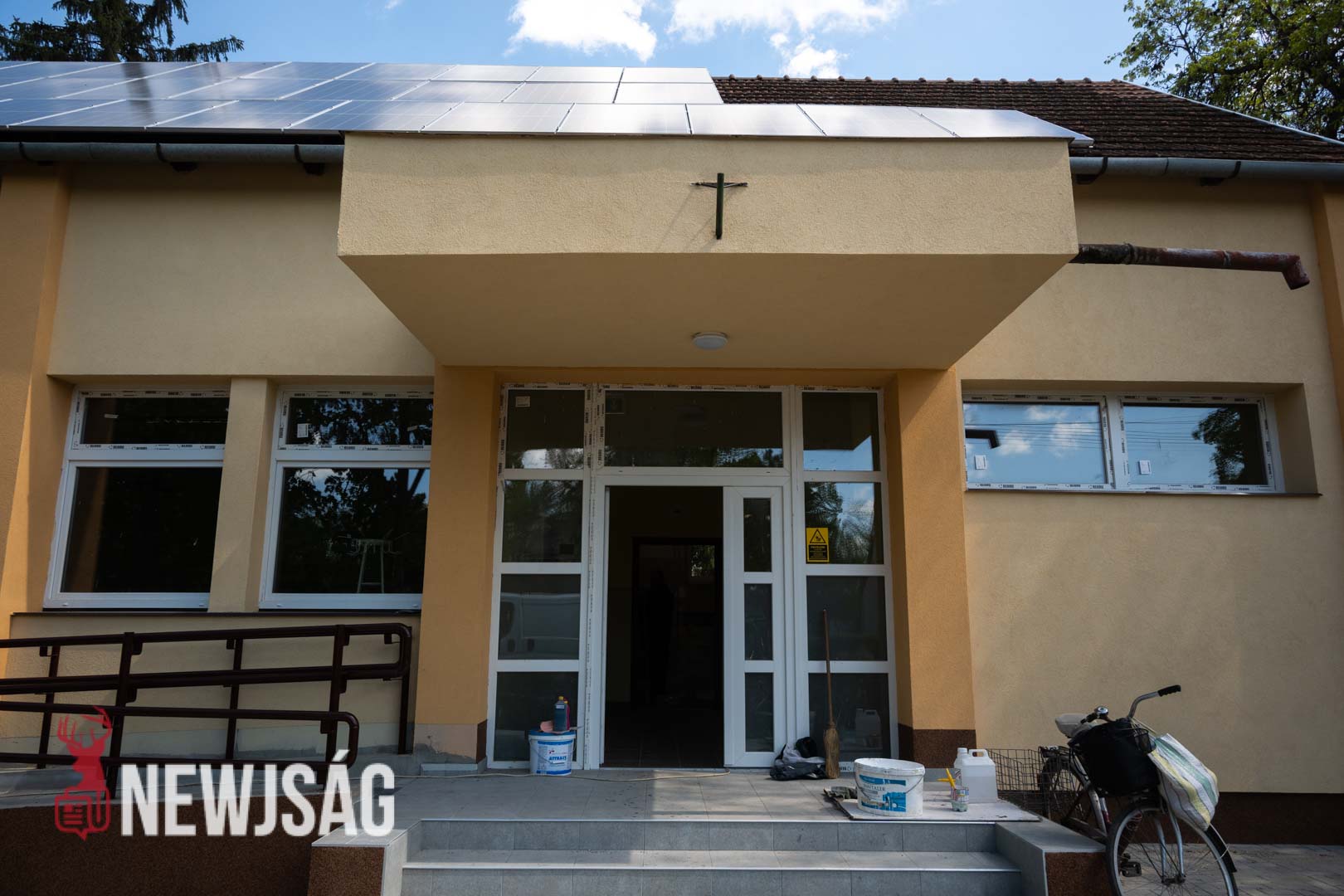 “A határidő nem szorít, hiszen néhány napos munkáról van szó, amik befejezési határideje május vége” jelentette ki Molnár József, majd felsorolta az elmúlt időszak fejlesztési tartalomjegyzékét: Kétkarú akadálymentes rámpa készült, illetve mozgáskorlátozott mosdó került kialakításra került az épületen belül. A 16 centiméteres utólagos hőszigetelés 550 négyzetméternyi felületet érintett, ami előtt megtörtént a nyílászárók cseréje. A két állókazánt egy kondenzációsra cserélték. Ez szükség esetén rásegít a napkollektorok használati melegvíz előállítására is. Mindemellett 5 kW-os napelem került az intézmény tetejére, illetve folyamatban van még a hálózatfejlesztése 3×25 amperre.