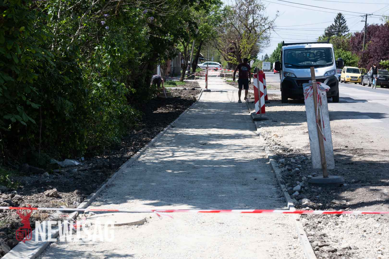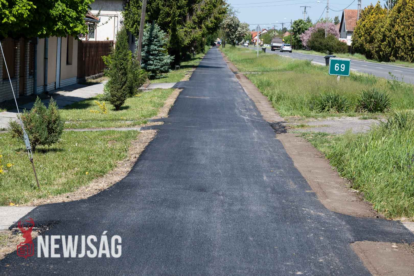 A felújítások lassan a befejező szakaszukba fordulnak; már a második 400 méteres szakaszon dolgoznak a kopóréteg felvitelén, csak a padkázás és a szegélyvágás van hátra.