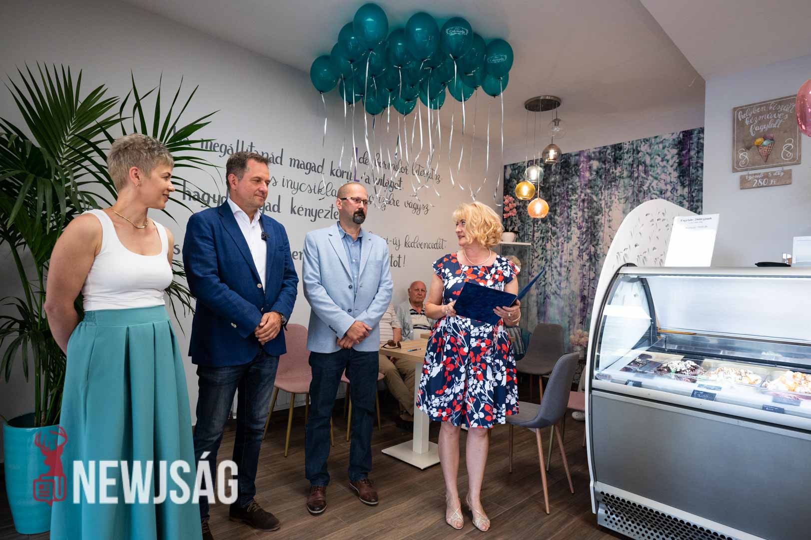 “Ősidők óta a cukor a boldogság és a szeretet szimbóluma; ki menne be egy cukrászdába szomorkodni búslakodni. A város közepén van ez a cukrászda, úgy is mondhatnánk, hogy a város szívében ott a boldogság”, fogalmazott Gaál Roland. Méltatta Ildikó szakmai alázatát, amivel létrehozta kedvenc süteményeit, az Eszterházy-tortát, az Alföld aranya fagylaltot, vagy az Angyali bejglit.