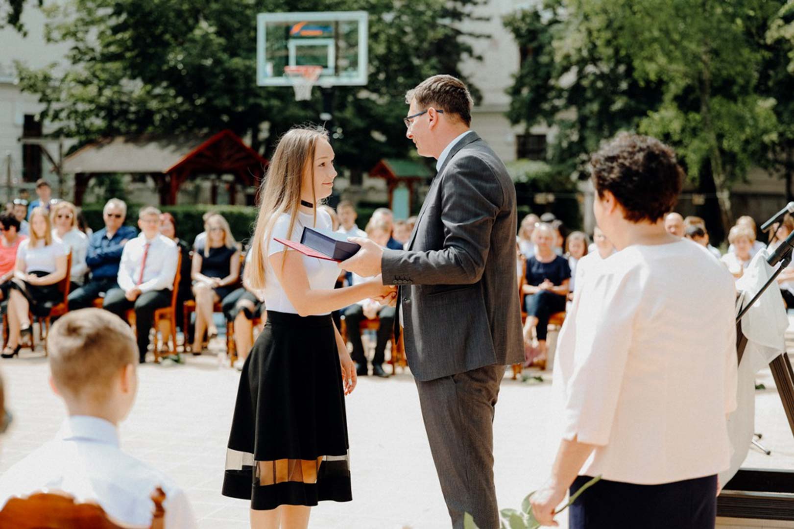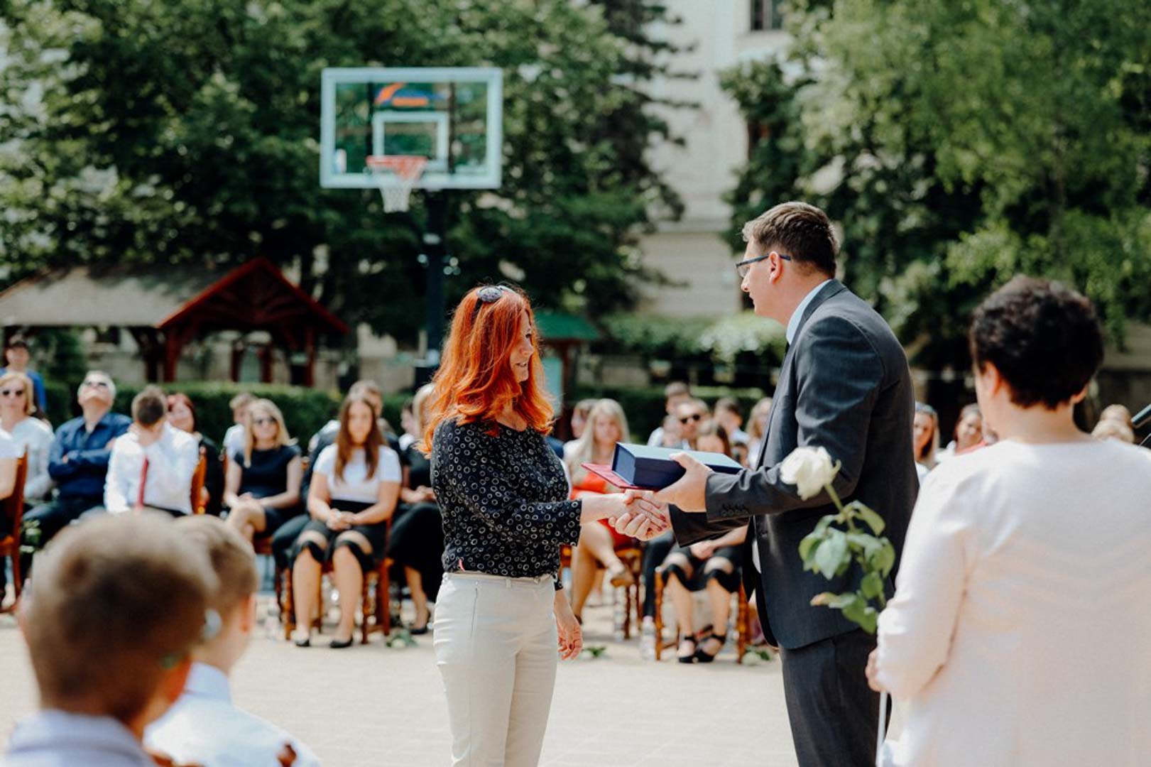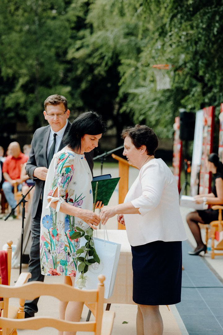 A Gyakorlóintézményben a idei évben a járványügyi helyzetre tekintettel osztályközösségekben szervezik a tanévzáró ünnepélyt. A legrangosabb elismerések így a ballagáson kerültek átadásra. Dr. Benczéné Kardos Karola a Bóbita Alapítvány elnöke, Bajomi-Nagy Éva igazgatóhelyettes és Bíró Gyula intézményvezető adta át az idei elismeréseket.