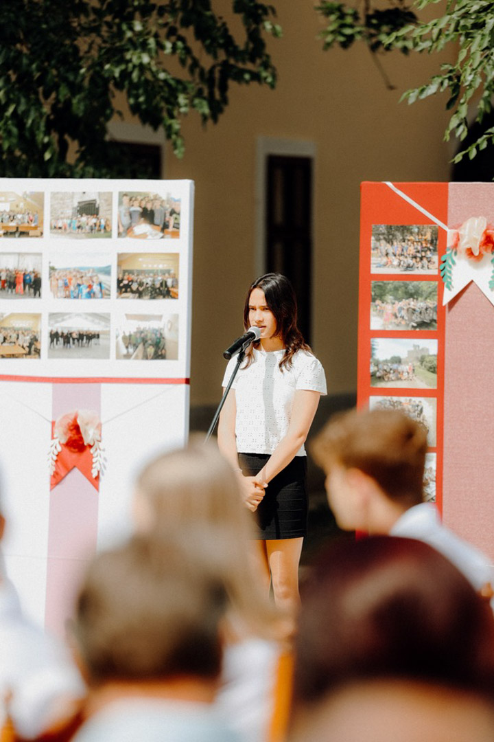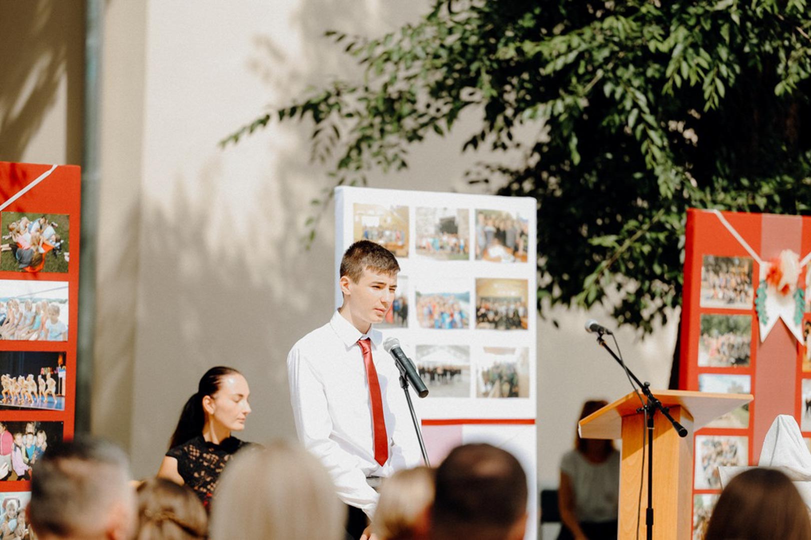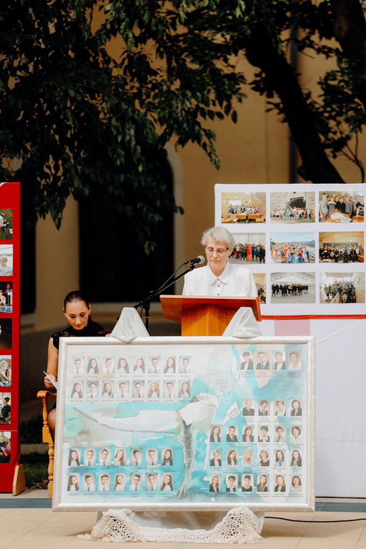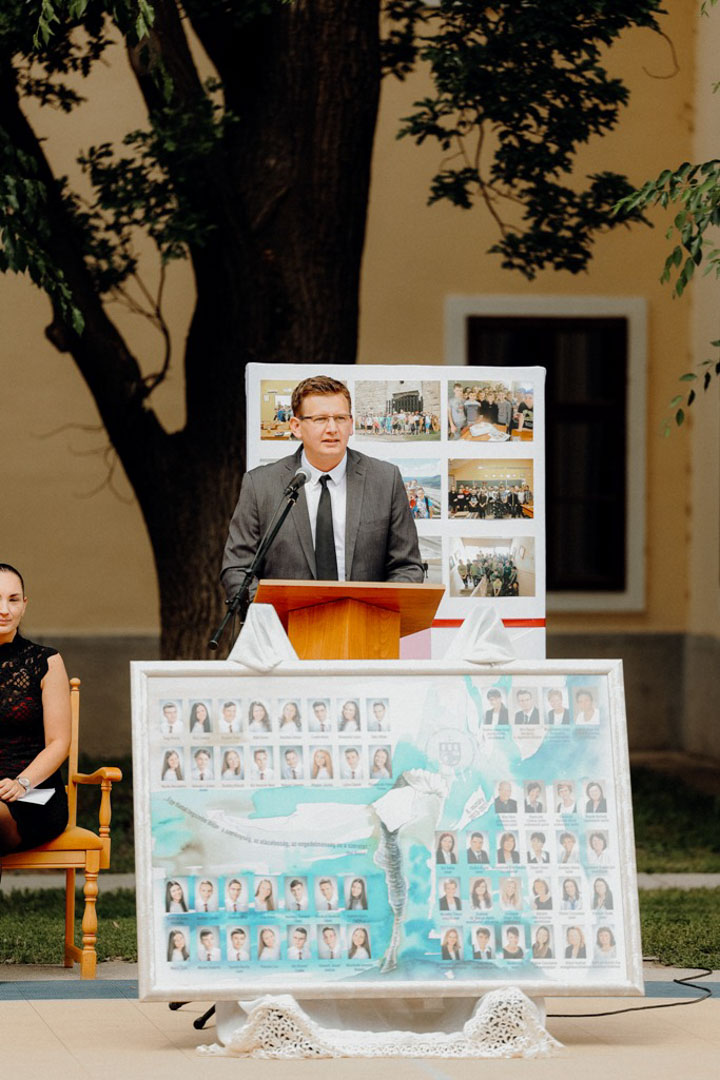 „Egy fiatal legszebb dísze a szerénység, az alázatosság, az engedelmesség, és a szeretet.”-szólt a nyolcadik osztályosok választott idézete Don Boscotól. Sokat nem lehet hozzátenni. –fogalmazott. Minden tanulótól egy-egy személyes történettel, egy-egy személyes szív-lélek-nyomattal búcsúzott. Az embereket – mondta köszöntőjében – nem arra kell tanítani, hogy hogyan nézzenek. Csupán azoktól az iskoláktól kell óvni, amelyek megvakítják őket.