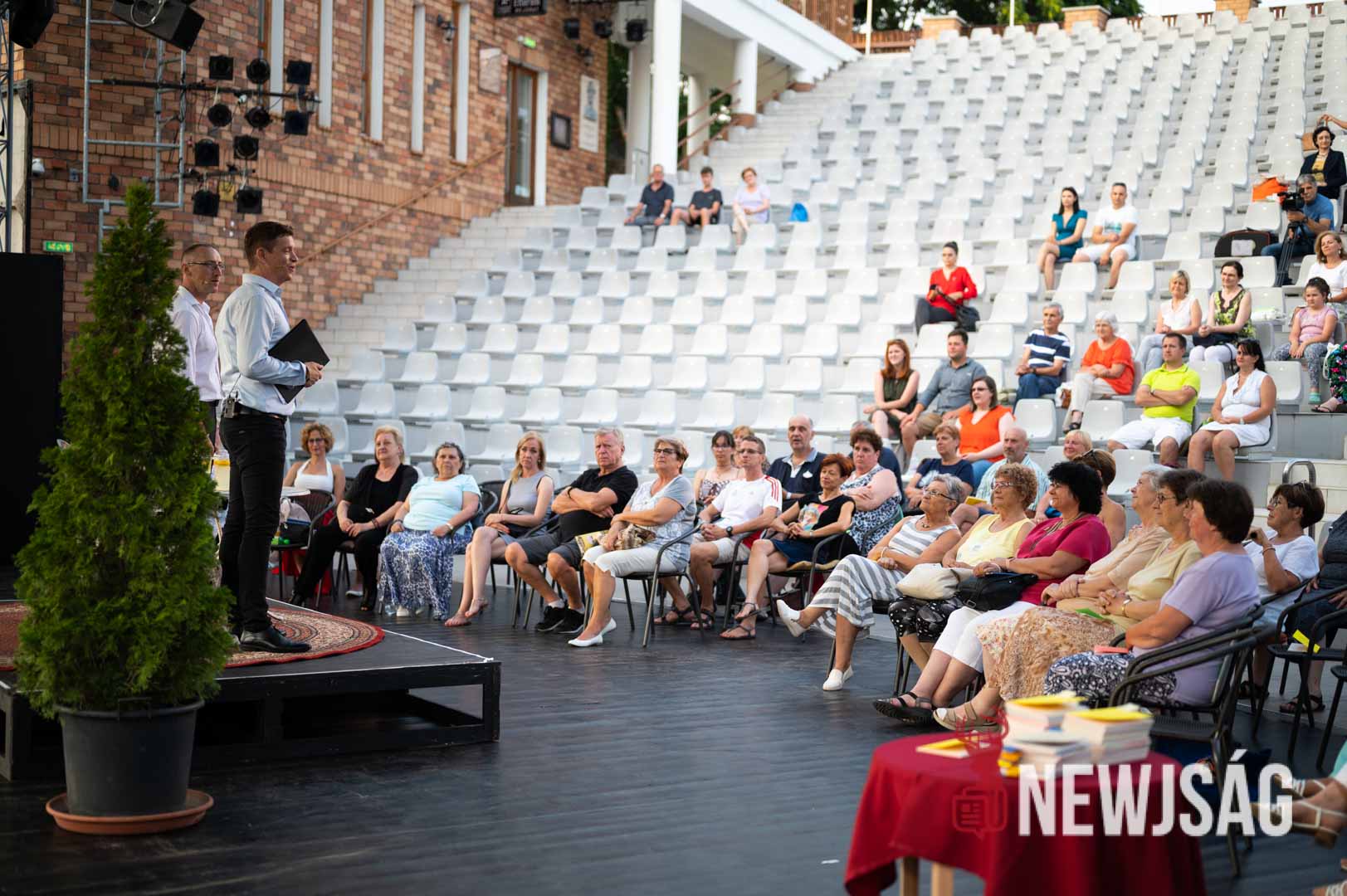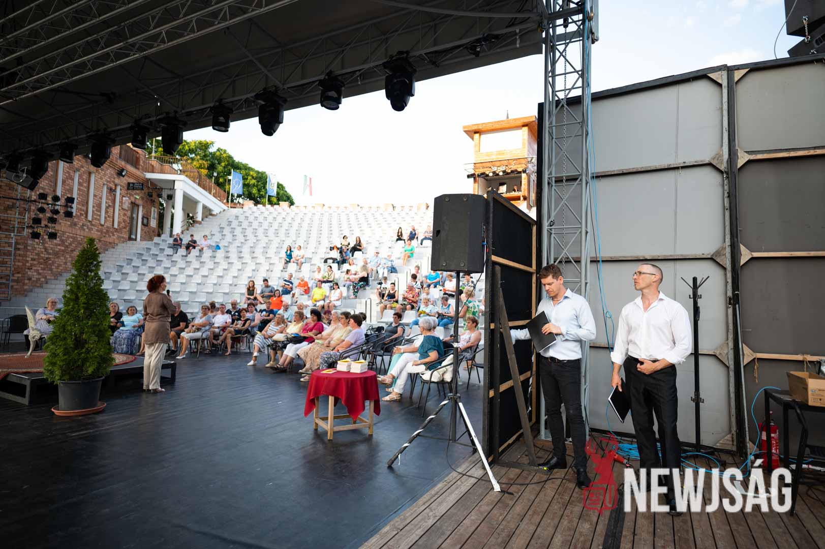 Dr. Dósa Zsuzsa művészeti igazgató vezette be az előadást. Elmondta, hogy mindkét színművész szereti Karinthyt, így jött az ötlet, hogy állítsanak össze egy önálló estet, Karinthy Frigyes óriási életművéből. Színpadra hívta a két főszereplőt, Boronyák Gergelyt és Timkó Jánost.