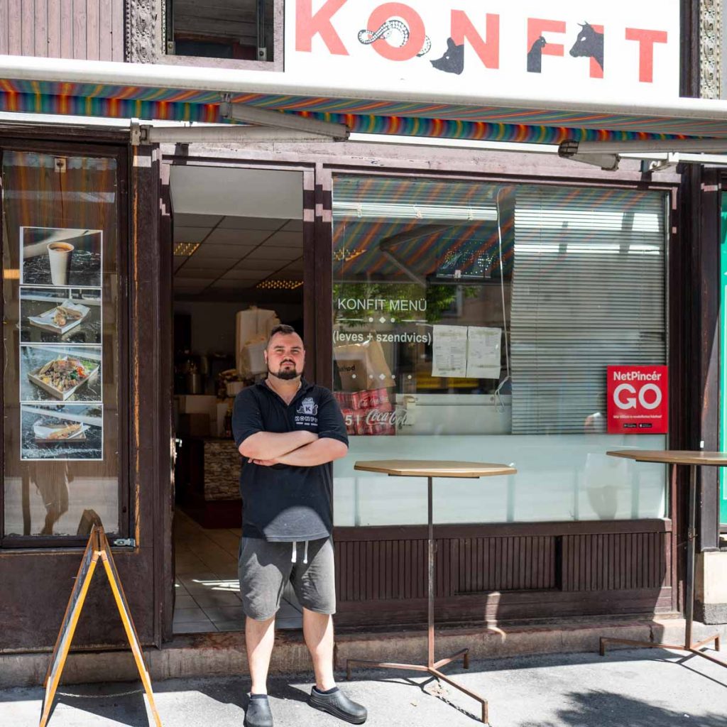 Ketten viszik a Konfit elnevezésű helyet. Az üzlet tulajdonosát, Révész Krisztiánt kérdeztük miközben javában pörgött az üzlet, sorra adták a kilincset egymásnak a betérő vendégek, de még inkább az ételfutárok.