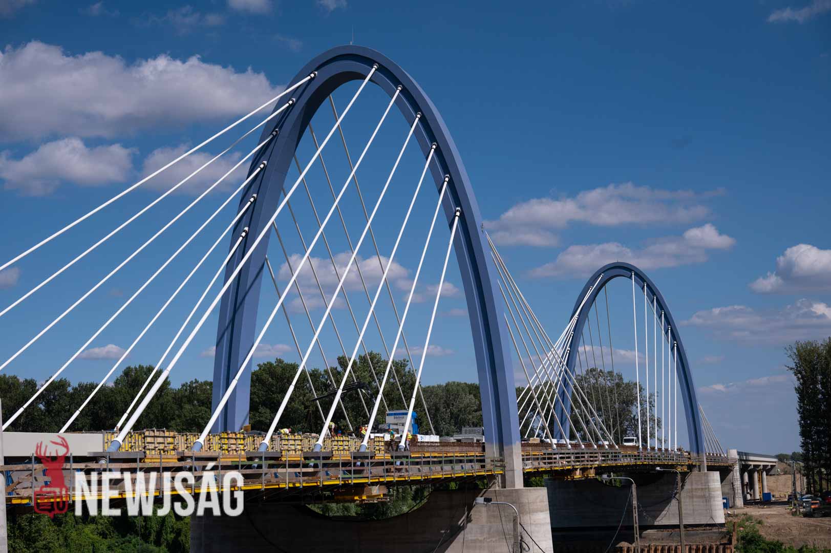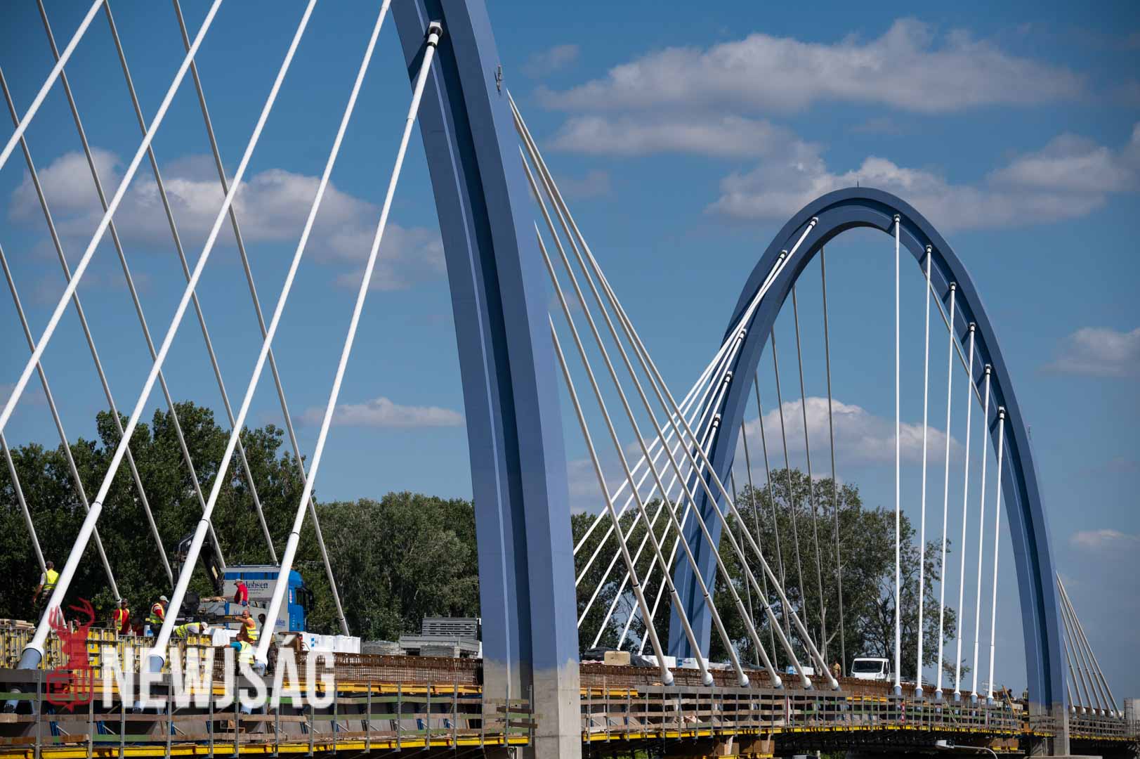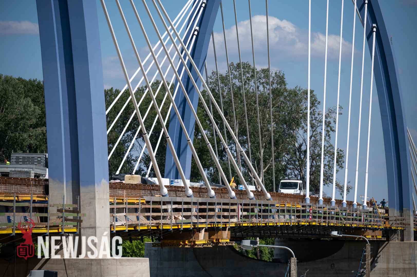 Tegnap lehetőséget kaptunk néhány fotó készítésére az M44-es új Tisza-hídjáról. A múltkor úgy tűnt, hogy már a terheléspróba zajlik, de nem, a munkálatokat végzők autói álltak szorosan egymás mögött a hídon.