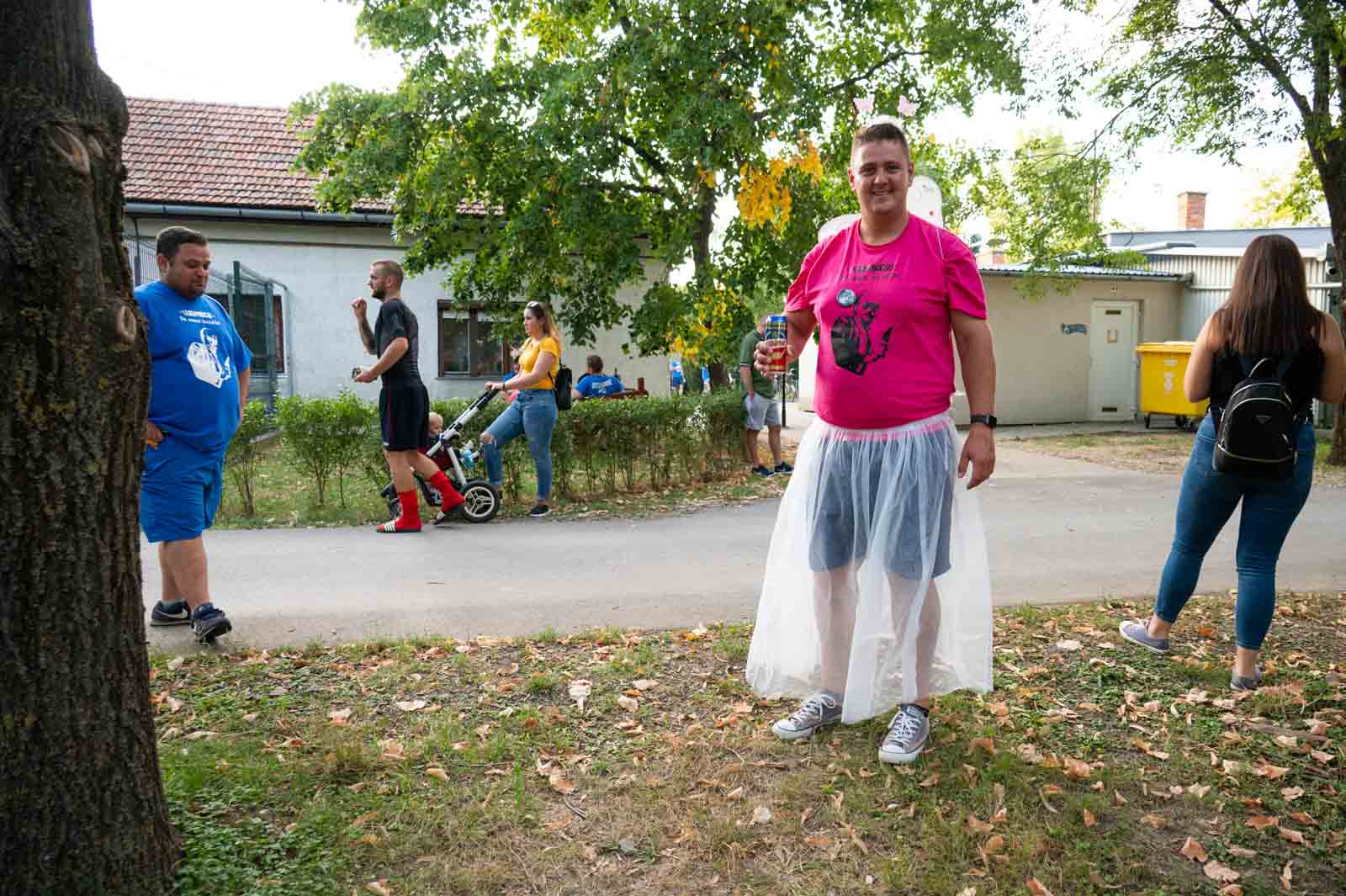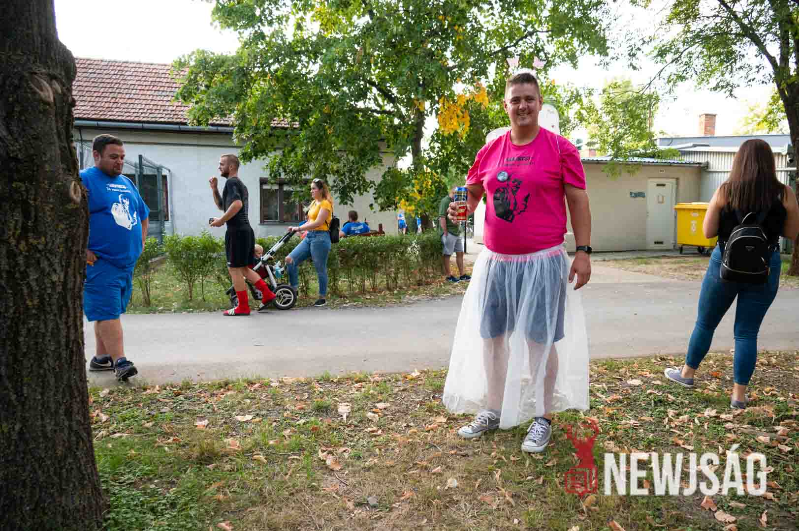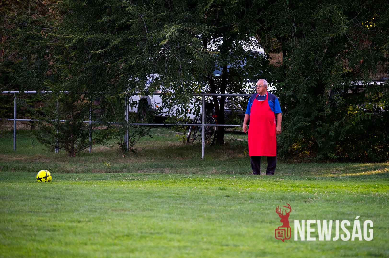 Sajnos a kezdőrúgásról a programok torlódása miatt lemaradtunk, ugyanis azt a pinkbe és tüllszoknyába öltözött vőlegény végezhette el, pedig az a kép akár az országos sajtót is bejárhatta volna. A srácok végigszurkolták a Hunyadi mérkőzését, majd a lefújást követően “Gyertek ide! Gyertek ide!” skandálással hívták pacsizni a hazaiakat.