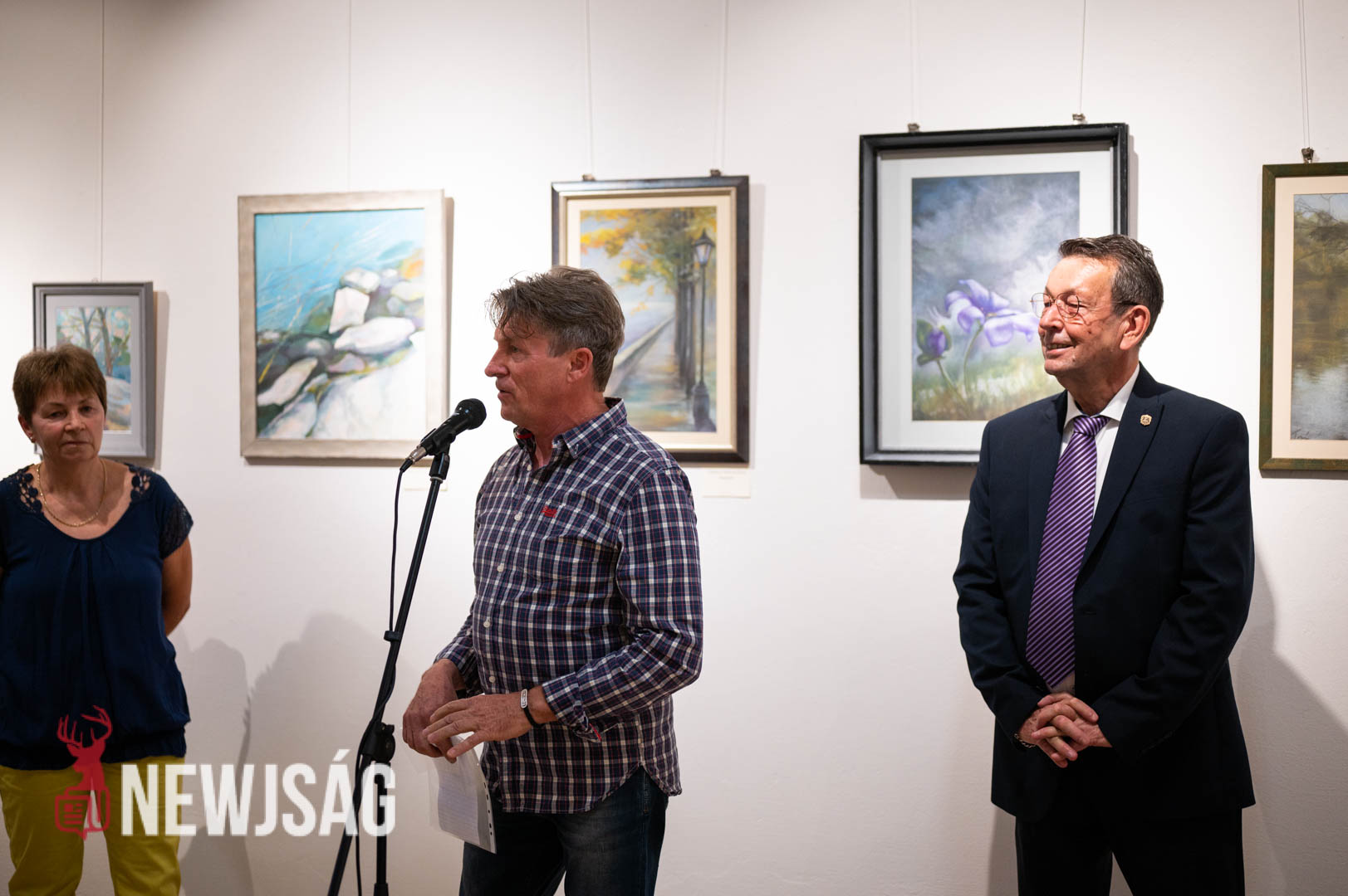 Korbely Istvánnak az előtte szólók után már kevés dolga maradt. Elmondta, ő is most látja először a kiállítás anyagát, de örömmel vette észre, hogy az milyen színes. Mikor a táborban körbejárta az alkotókat, nem sok munkája akadt, már-már kész festményekkel találkozott ott is.