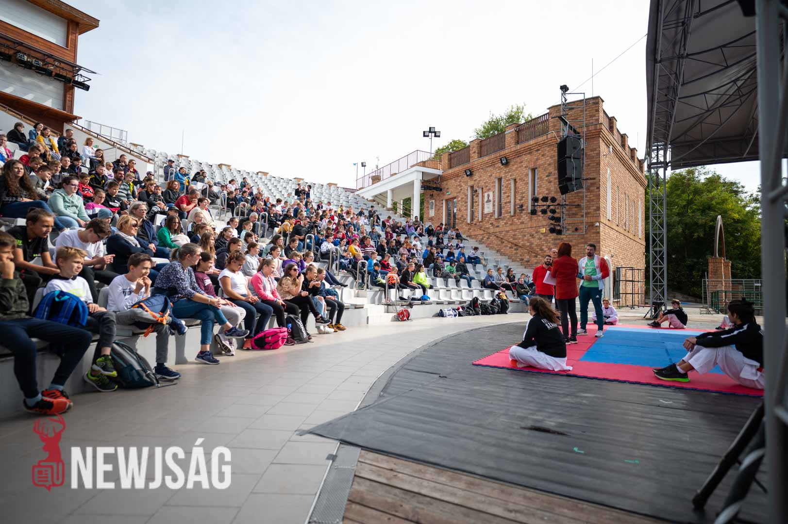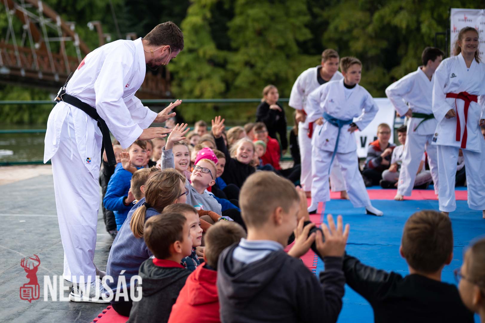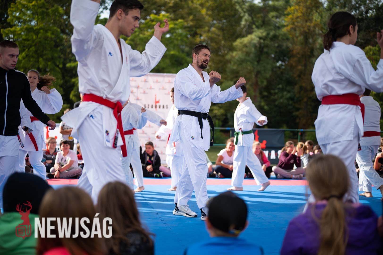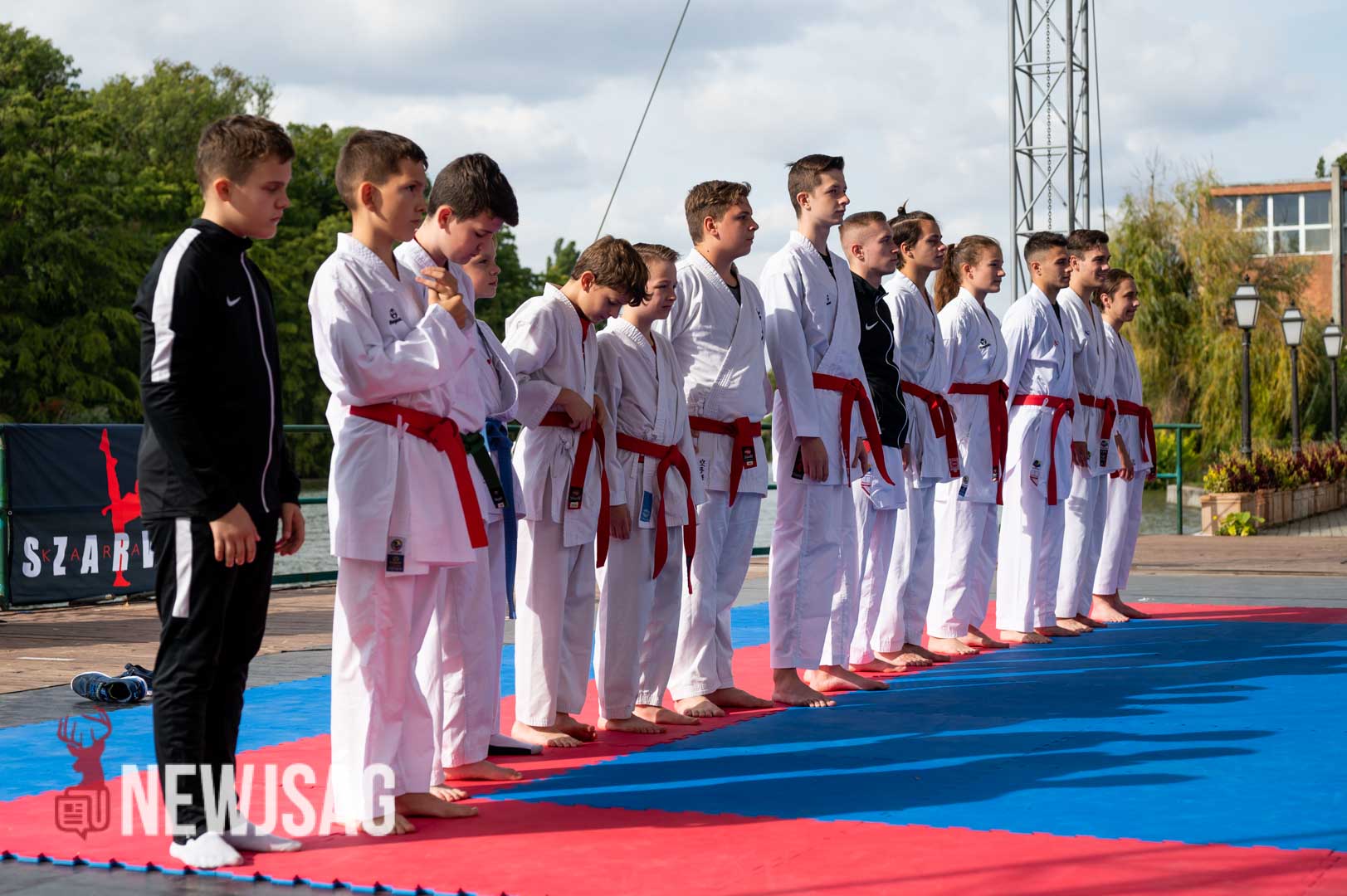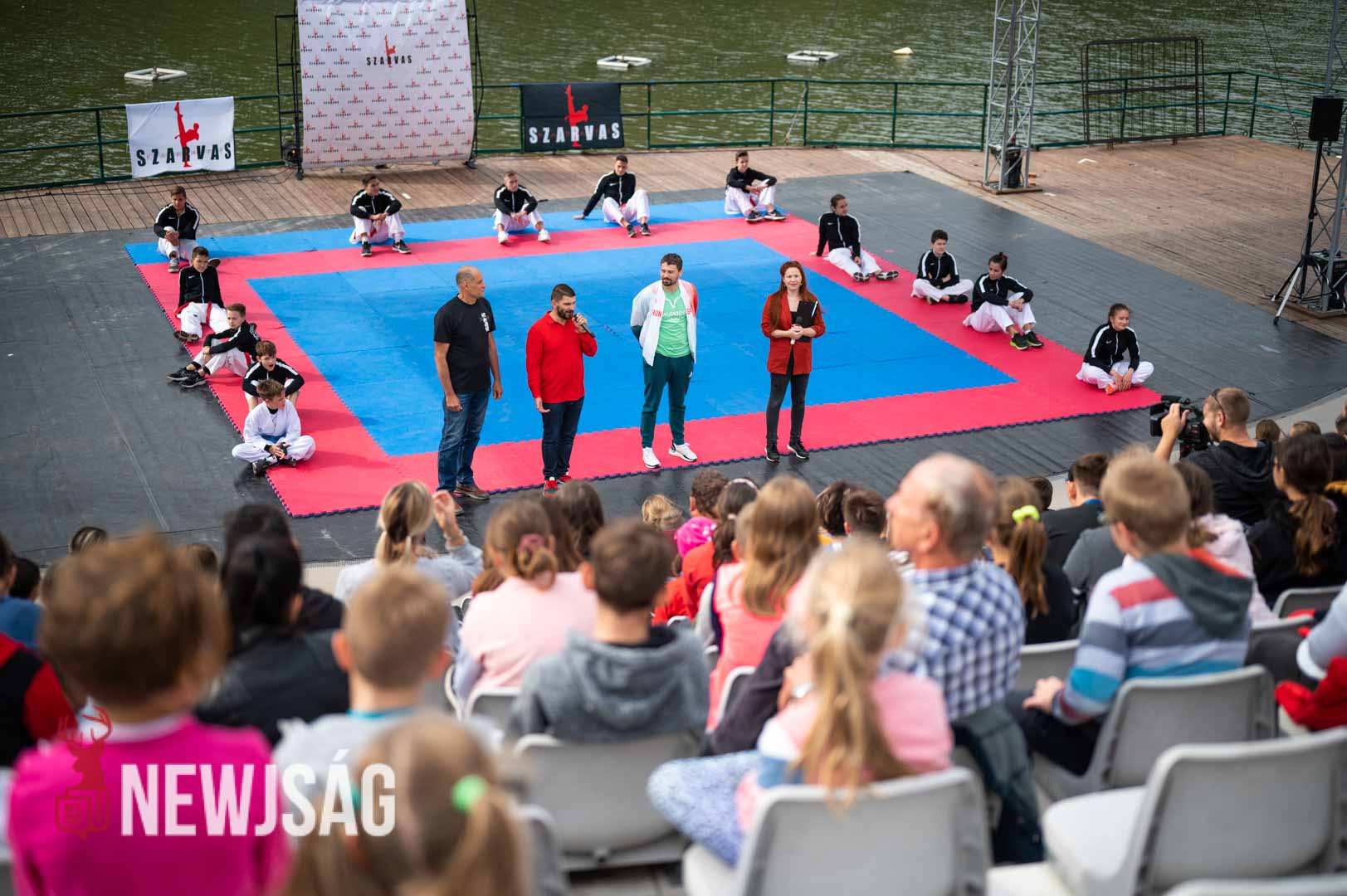 Tegnap Hárspataki Gábornak egyetlen ellenfele volt Szarvason, a szél, ami minden áron vízi sportot szeretett volna csinálni a karatéból azzal, hogy a tatamit a Körösbe fújja. A szelet a színpadi beszélgetés ideje alatt a szarvasi karatésok, majd az azt követő bemutatóedzés alatt a szélén ülő fiatalok hatástalanították.
