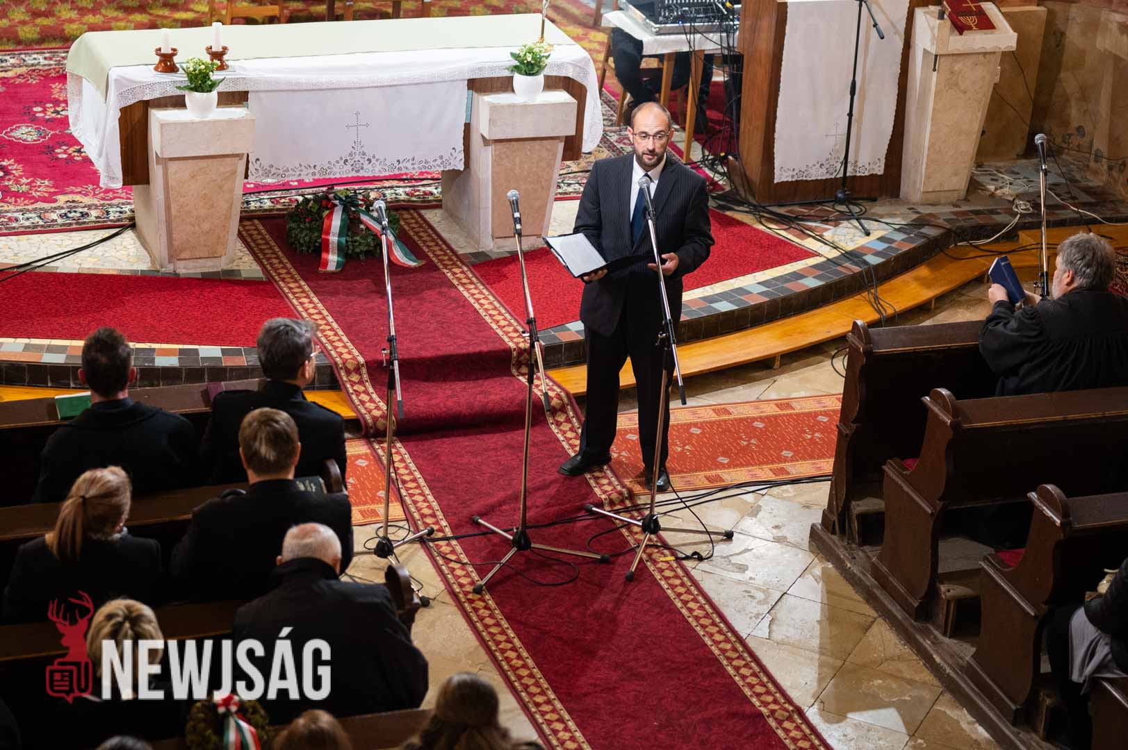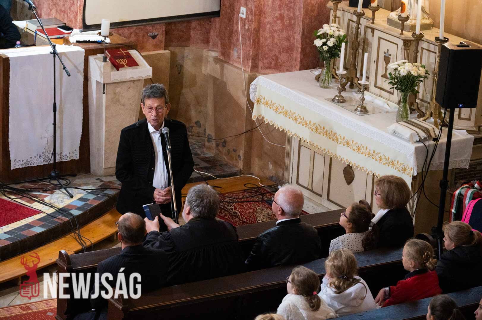 Őt az ünnepi megemlékezés szónoka, dr. Valastyán Balázs követte. A Benka Gyula Evangélikus Általános Iskola történelemtanára időutazásra hívta hallgatóságát.