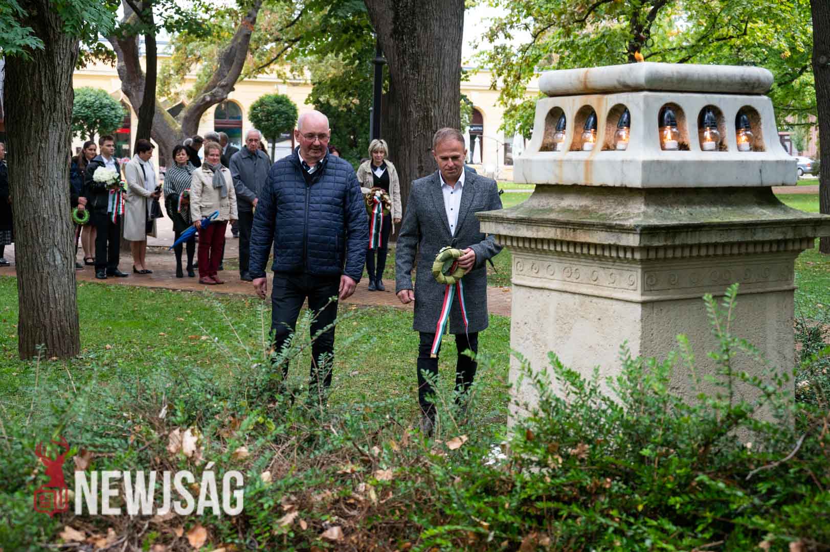 Őket Babák Mihály polgármester követte: “Emlékeznünk kell a miniszterelnökre, az aradi tizenháromra, azokra a katonákra, akik a szabadságért, a függetlenségükért az életüket áldozták.” Beszédében párhuzamot vont a 172 évvel ezelőtti forradalmi cselekményekkel, miszerint ma is harcolni kell Európával a magyar nemzetállamért, az önrendelkezés jogáért.