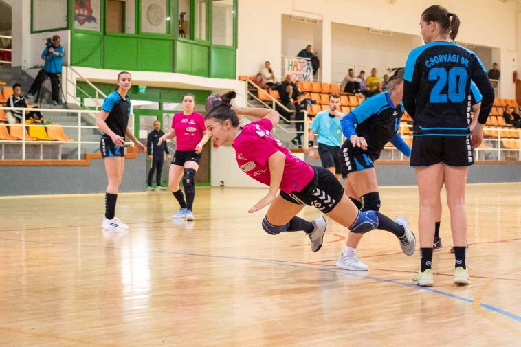 Az első találatot a vendégek szerezték a 3. percben, de jött a válasz is gyorsan és a hazai fordítás is. A szarvasiak jó védekezése folytan a csorvásiak gólzsákja nem tudott érvényesülni, a másik oldalon viszont Majoros Flóra többször is betalált, ötgólos előnyhöz juttatva övéit a szünetre. A második félidőben váltott gólparádét láthattak a nézők. Ekkor már a vendégek átlövője, Baráth Berta is lényegesen jobban érezte a kaput. A védelem oszlopának számító Hajdu 50. percben való kizárását is átvészelte a csapat, így az első játékrészben megszerzett előnyét növelni tudó Szarvas megérdemelten nyerte a kiállításokkal tarkított rangadót.