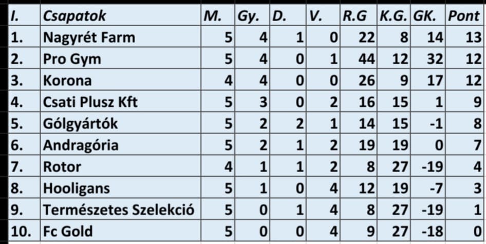 A Nagyrét Farm 11 játékossal állt fel, és le is győzte a Hoolokat, megőrizve első pozicóját.