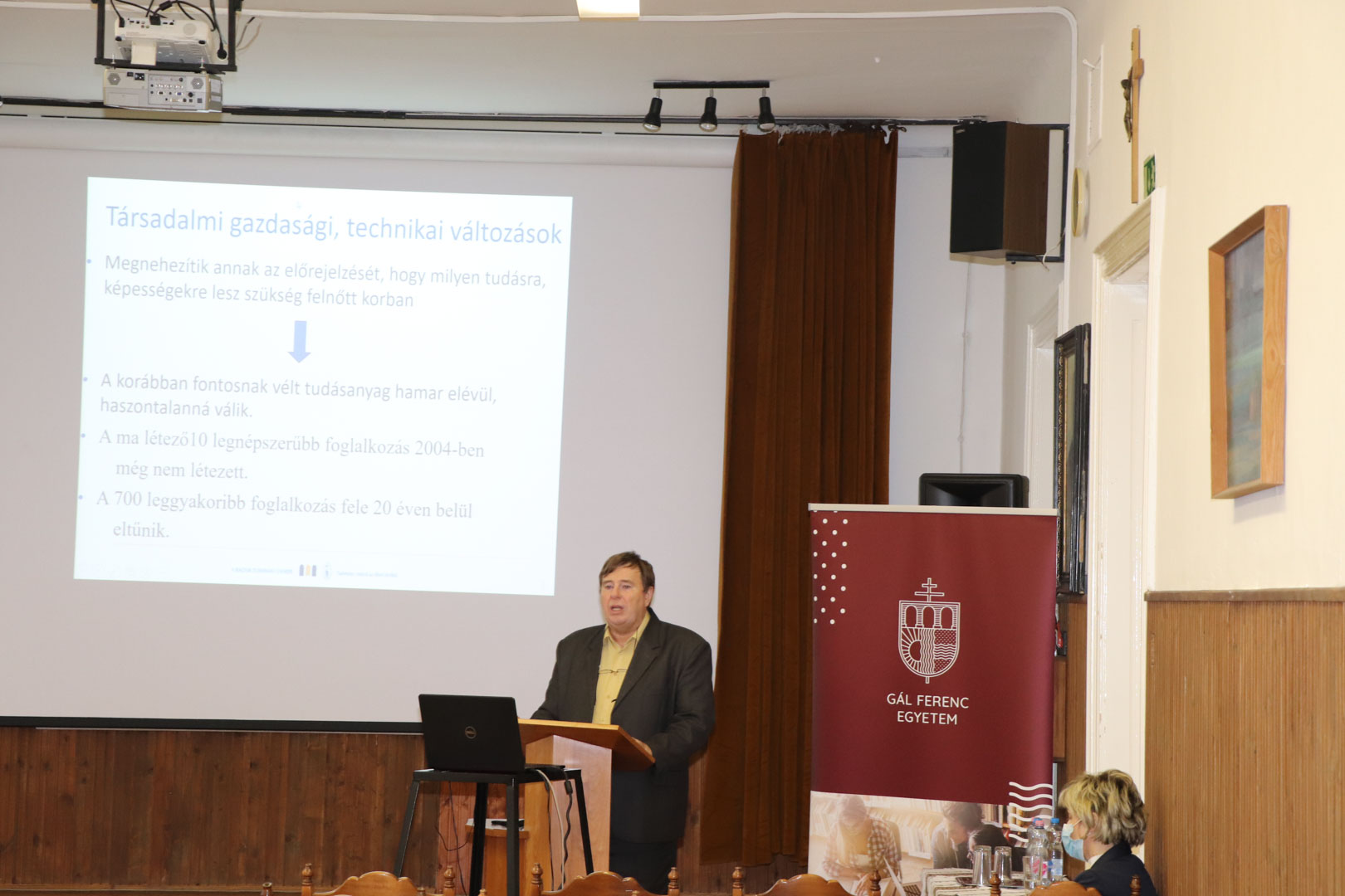 A konferencia Szabóné dr. Balogh Ágota, dékánhelyettes, főiskolai docens asszony Mesterséges intelligencia – élhető jövő?! című előadásával folytatódott, amely a mesterséges intelligencia és az oktatás közötti összefüggések megláttatására helyezte a hangsúlyt. Ezt követően Dr. Lipcsei Imre, tanszékvezető főiskolai tanár Minden gyermek érje el saját képességeinek maximumát című előadását hallgathatták az érdeklődők, melynek középpontjában az a kérdés fogalmazódott meg, hogy milyen kompetenciákra is kell felkészítenünk a ma iskolába járó tanulókat, diákokat, hogy a jövőben is helyt tudjanak majd állni az élet valamennyi területén, illetve arra is rávilágított, hogy mennyire fontos ebben a mai nevelési folyamatban az egyéni képességek figyelembe vétele.