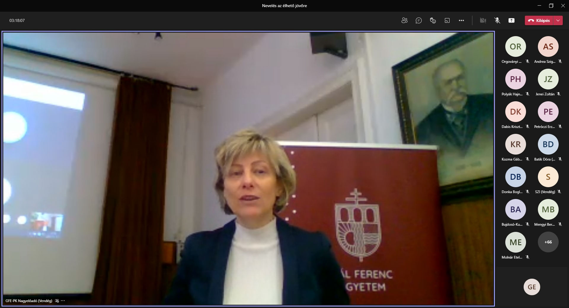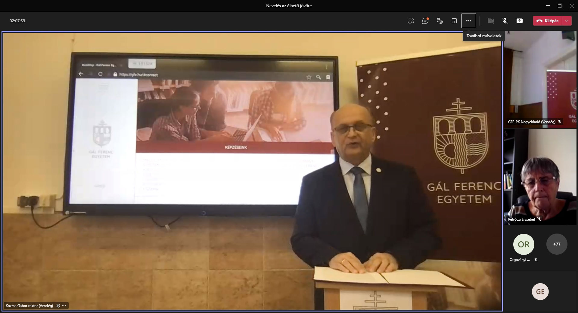 Dr. Katona Krisztina dékán asszony köszöntő gondolatait követően a jelenlévő hallgatóság, valamint az online térbe bekapcsolódó érdeklődők elsőként Dr. Kozma Gábor rektor úr konferenciát köszöntő szavait, valamint az élhető jövőre neveléssel kapcsolatos gondolatait hallgathatták meg. E gondolatokhoz szervesen kapcsolódott Dr. Petróczi Erzsébet dékánhelyettes, intézetvezető főiskolai tanár által A „képernyő” pedagógiai kihívásai címmel tartott előadás, melyben dr. Kozma Gáborral végzett közös kutatási eredményeikről számolt be.
