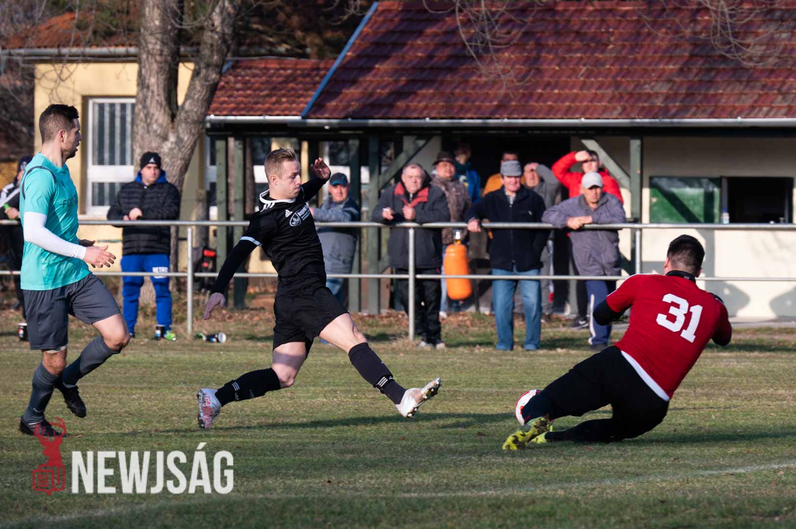 A vezetést a hazaiak szerezték meg Viszkok Dániel büntetőjéből (17′ 1–0). A válasz egy, a védelem mögé ívelt labdából gyorsan érkezett (21′ Kopács Zsolt 1–1). A vendégek második gólját Tövisháté Máté szerezte meg. Egy szögletből lepattanó labdát kotort a hálóba (31′ 1–2). Vendégvezetéssel mentek pihenőre a játékosok.