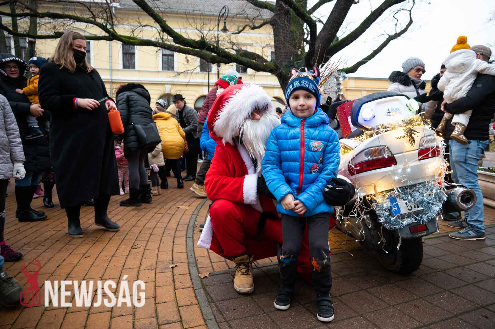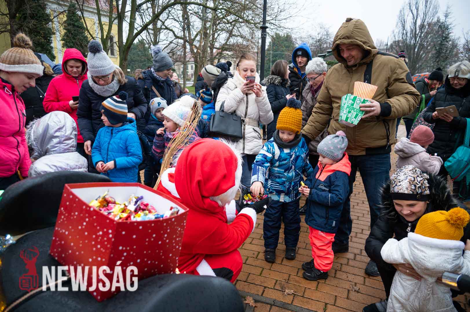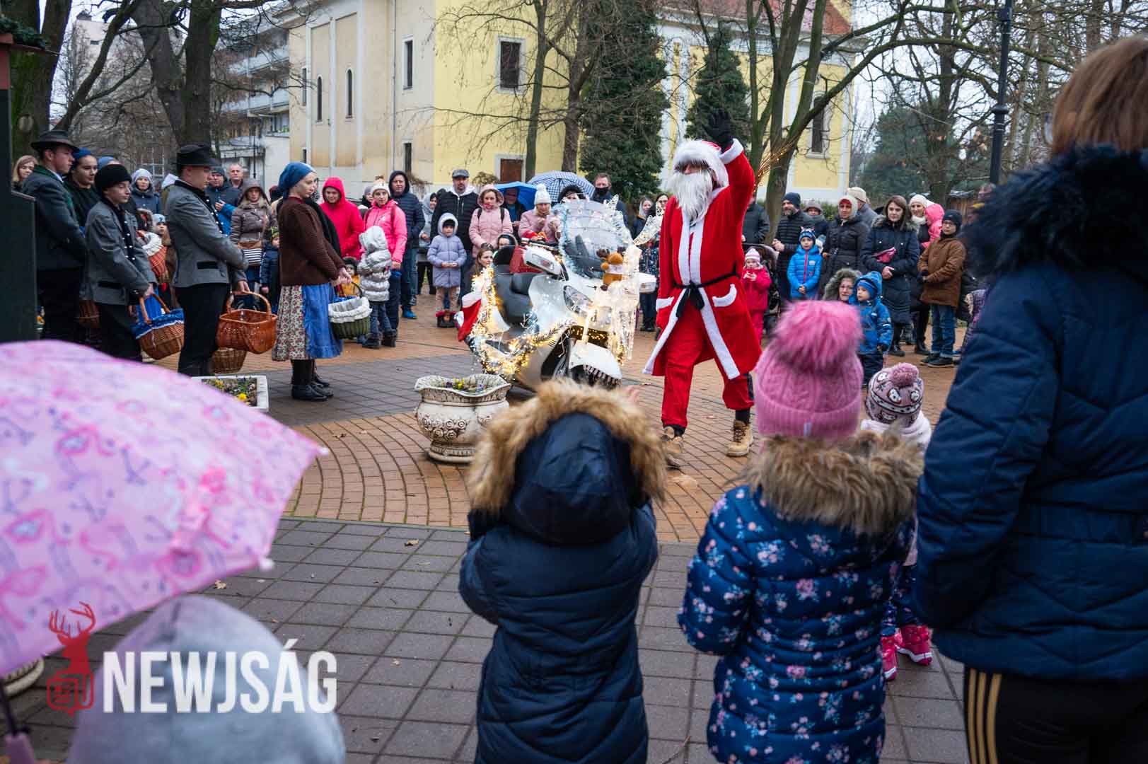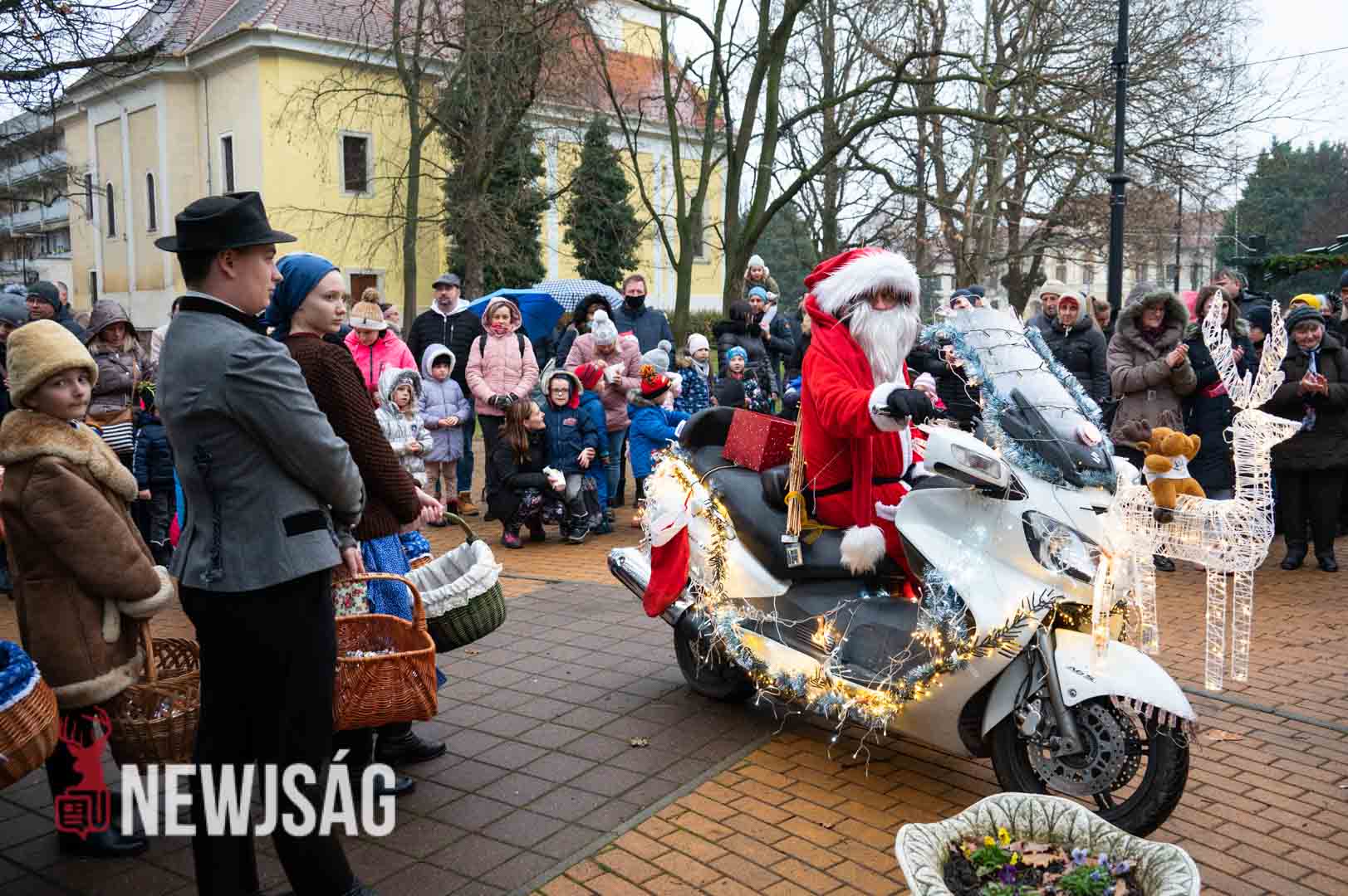Ide érkezett a Mikulás motoron, akit Csasztvan András, a város Miklás-ügyi kapcsolattartója kért fel a színpadra Babák Mihály polgármester mellé.