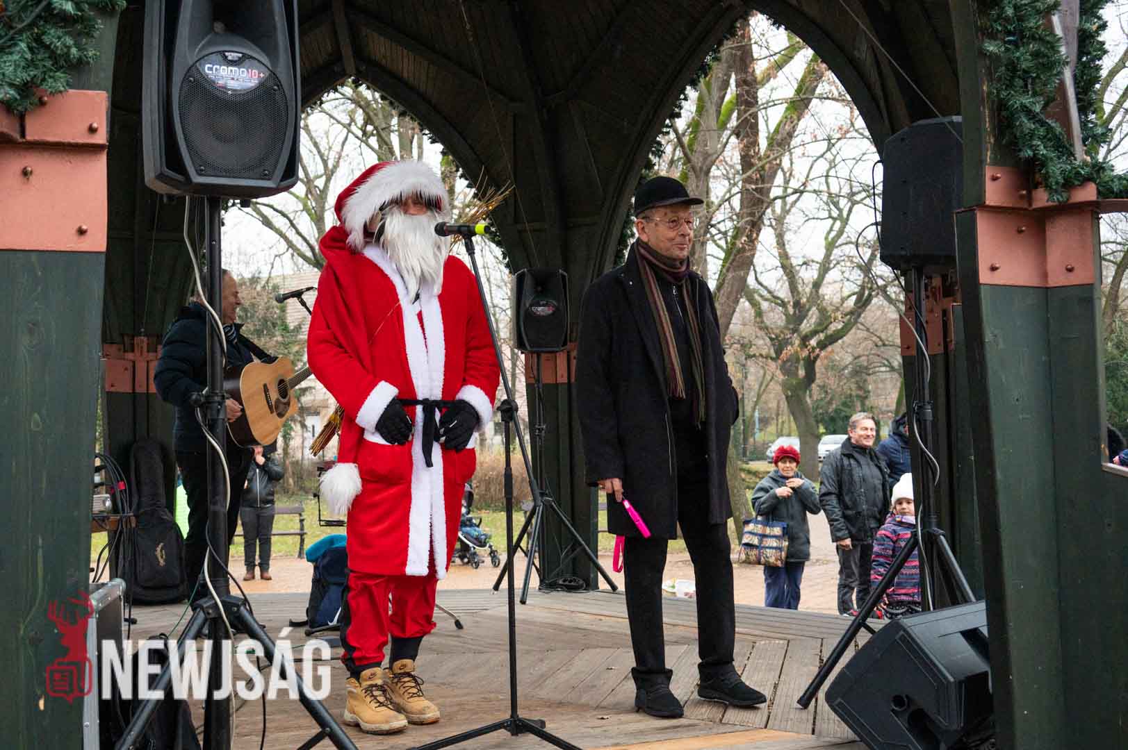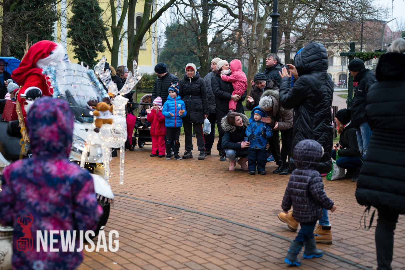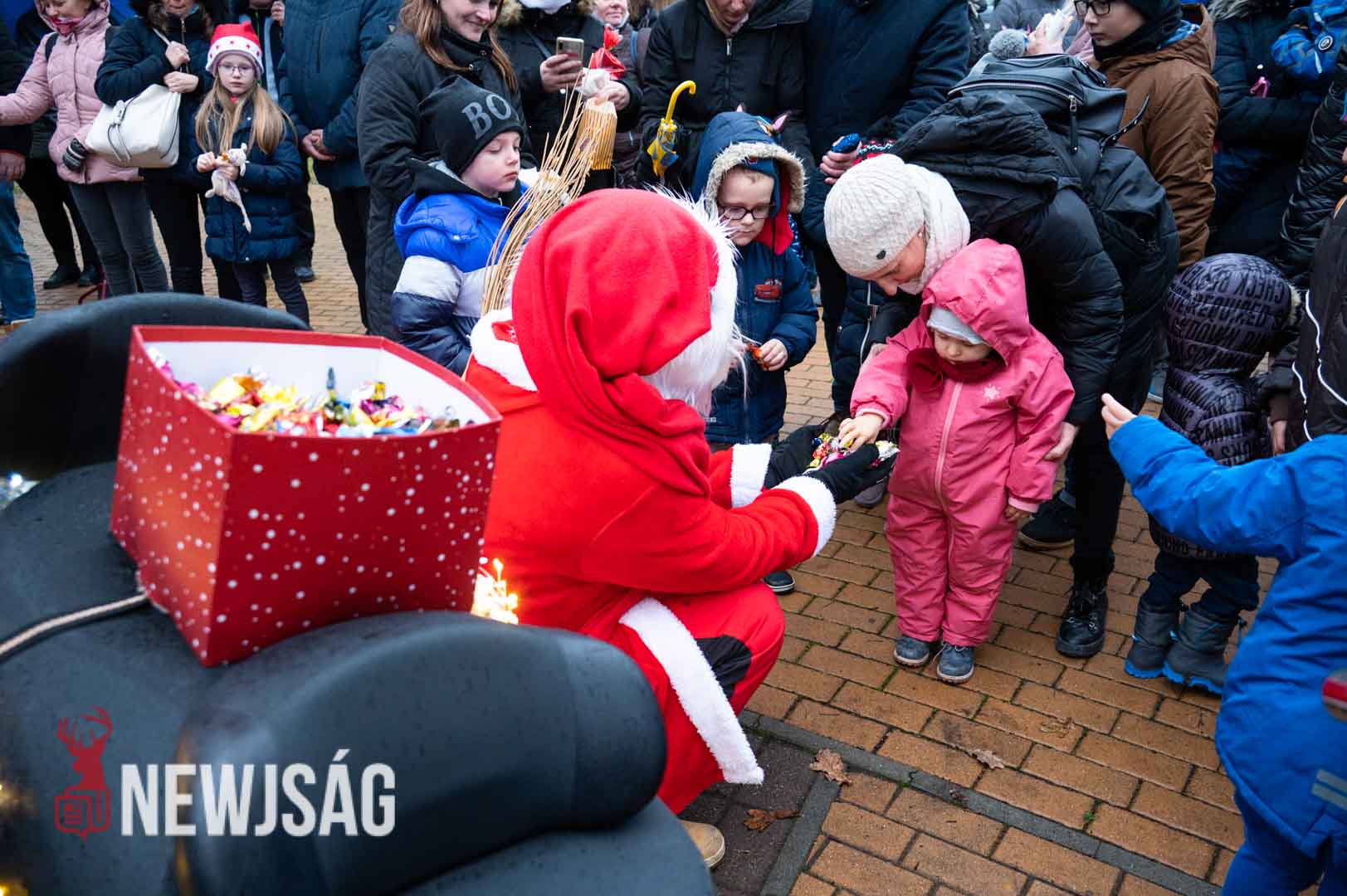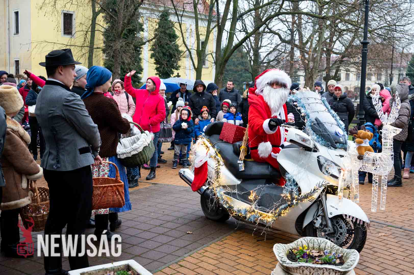 Ide érkezett a Mikulás motoron, akit Csasztvan András, a város Miklás-ügyi kapcsolattartója kért fel a színpadra Babák Mihály polgármester mellé.