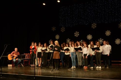 Két részből állt az ünnepi műsor. Az elsőben a gimnáziumban tanult valamennyi idegen nyelven felcsendültek a karácsony hagyományos és modern melódiái: szlovákul, olaszul oroszul, németül és angolul. Először álltak az alkalmi kórusok a teátrum színpadán.