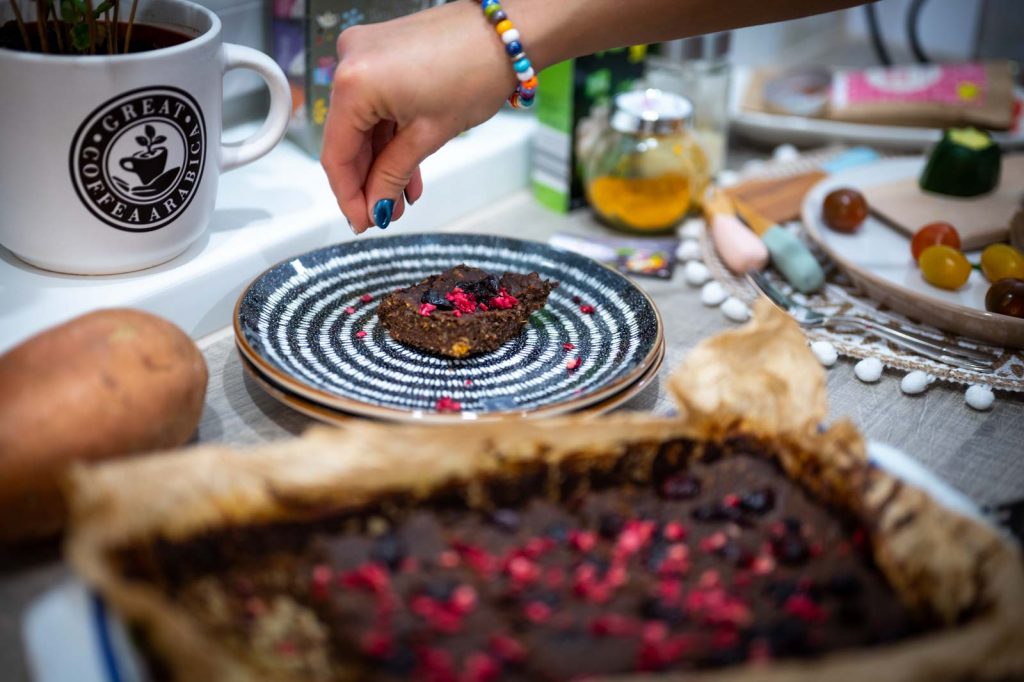 Édesburgonyából készült vegán brownie Anna lakáskonyhájából (Fotó: Babák Zoltán)